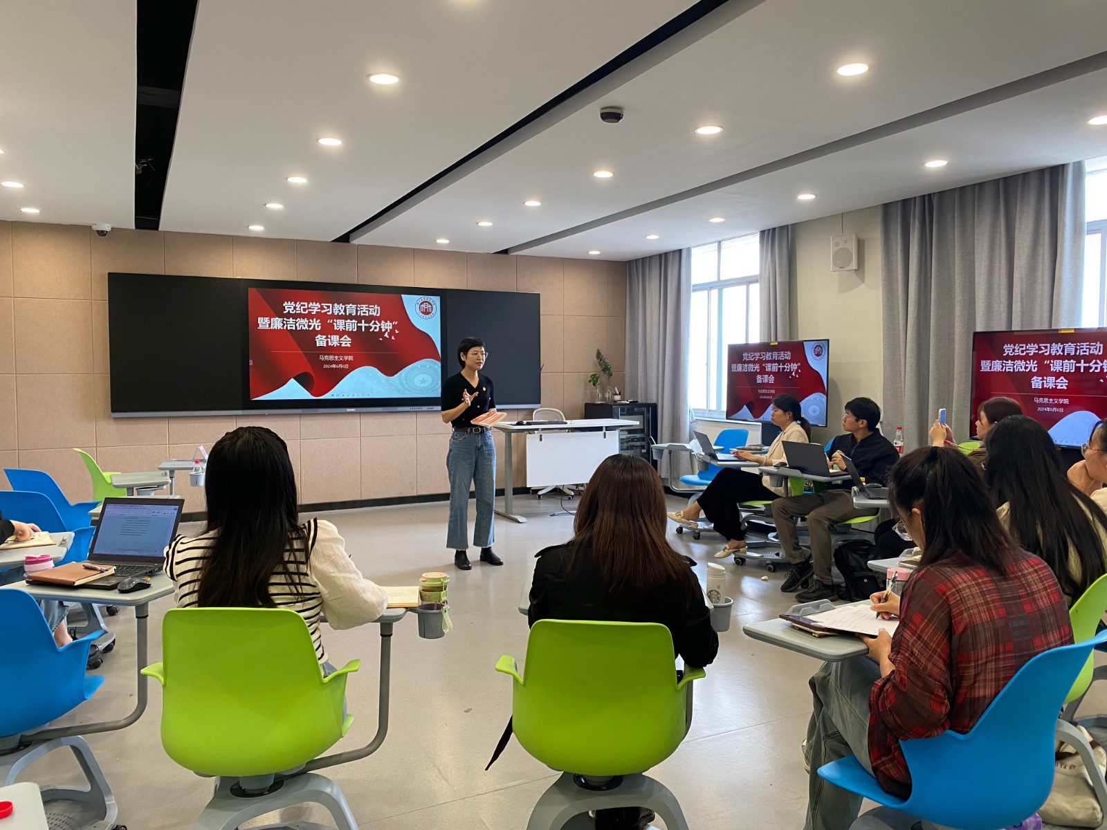 为深入学习贯彻习近平总书记关于党纪学习教育的重要讲话和重要指示精神,按照《中共浙江艺术职业学院委员会党纪学习教育工作方案》工作部署,6月6日和11日,马克思主义学院召开党纪学习教育暨“廉洁微光·课前十分钟”廉洁教育备课会,探讨如何更好地将党纪学习教育融入教学与工作全过程,马克思主义学院全体教职工参会。