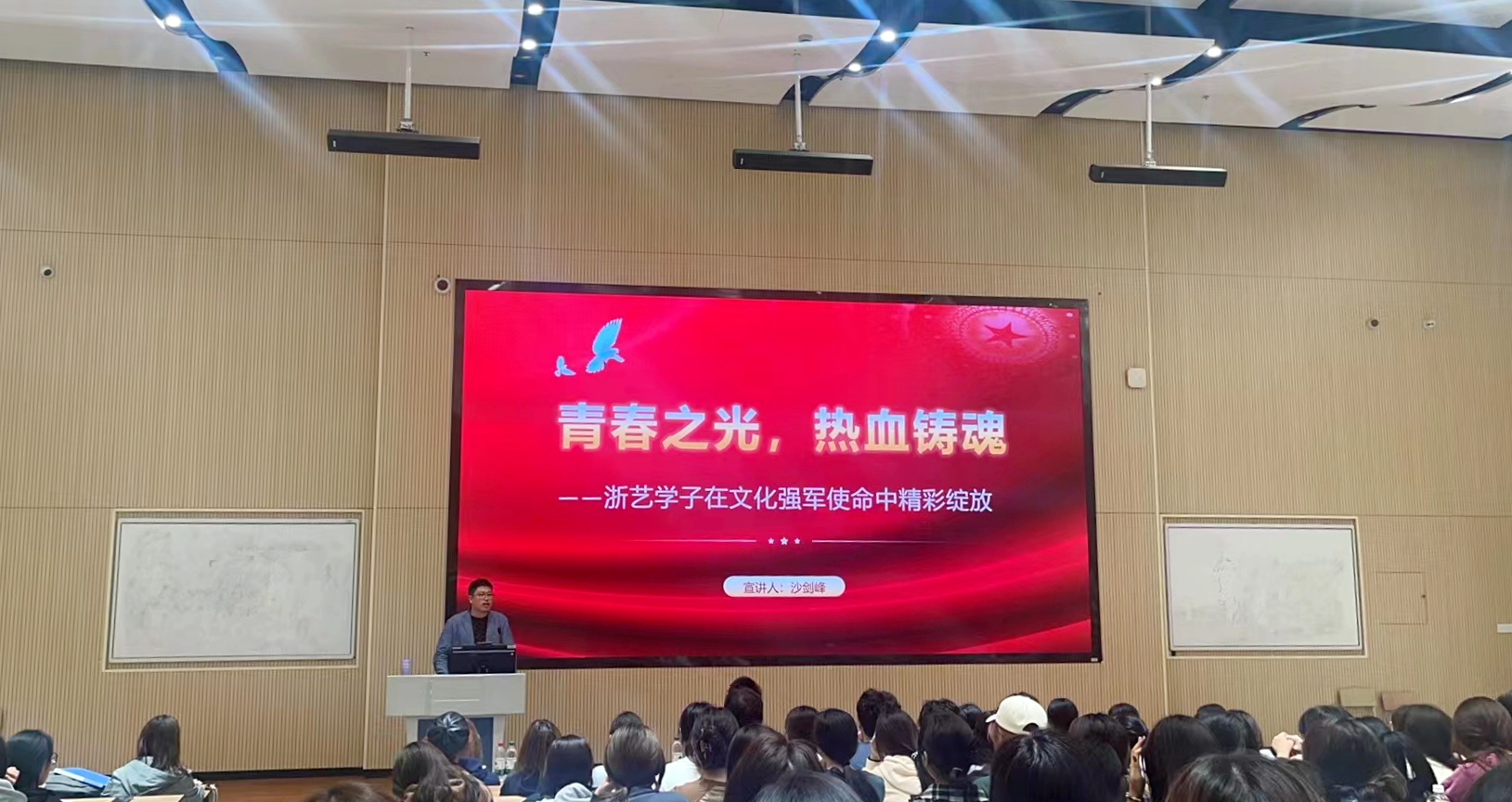 10月开始,学校以形势与政策课集中授课为契机,组织“浙艺青年说”师生理论宣讲团成员走进形式与政策课堂、走近学生身边,与授课教师一起,“以青春视角感悟伟大时代,用青春话语讲述伟大思想”,18位宣讲员以宣讲宣传为着力点,围绕习近平新时代中国特色社会主义思想、习近平文化思想、党的二十届三中全会全会精神、全国教育大会精神等,学习党的理论、传播党的声音,讲好浙艺故事、文广旅故事、浙江故事和中国故事。