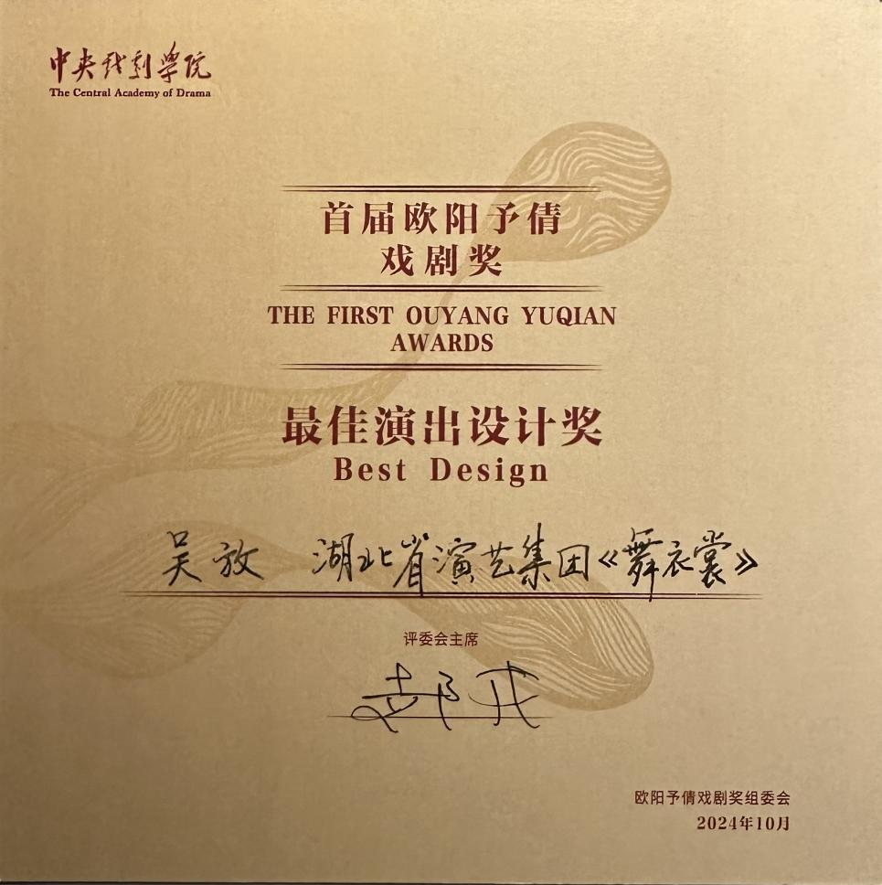 近日,首届欧阳予倩戏剧奖颁奖典礼在广西桂林举行。设计学院舞台艺术设计与制作专业教研室主任吴放的舞台设计作品《舞衣裳》,斩获最佳演出设计大奖。