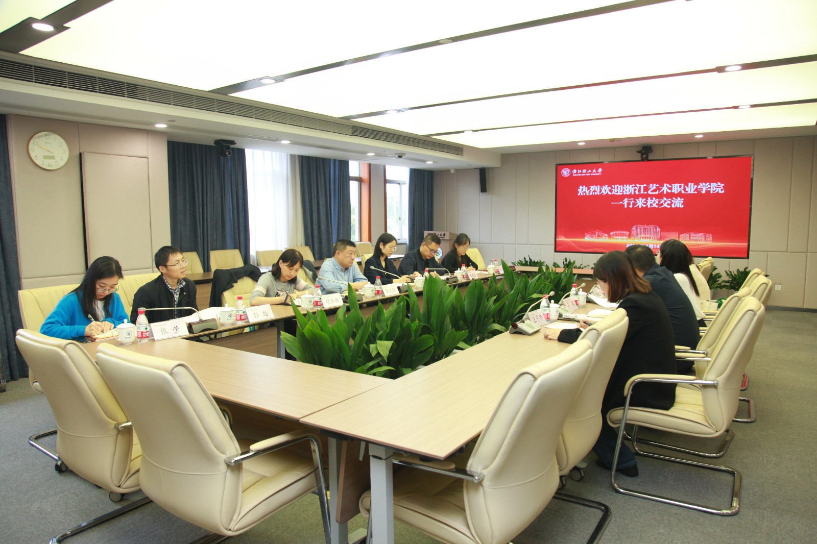 双方就如何更好开展、贯彻大中小学思政教育一体化工作进行深入探讨与交流。肖香龙就打造示范思政“金课”、优化学段育人协同机制、实践研学一体化等方面提供了一些意见和建议。傅文钢表示深受启发,要学习浙江理工大学纵横贯通、引培并举、融汇力量的大中小学思政课一体化建设思路,充分利用我校学制多样的优势,进一步挖掘艺术特色资源,开展一系列大中小学思政课一体化品牌项目建设,迎接大中小学思想政治教育一体化建设持续创新发展的新挑战。