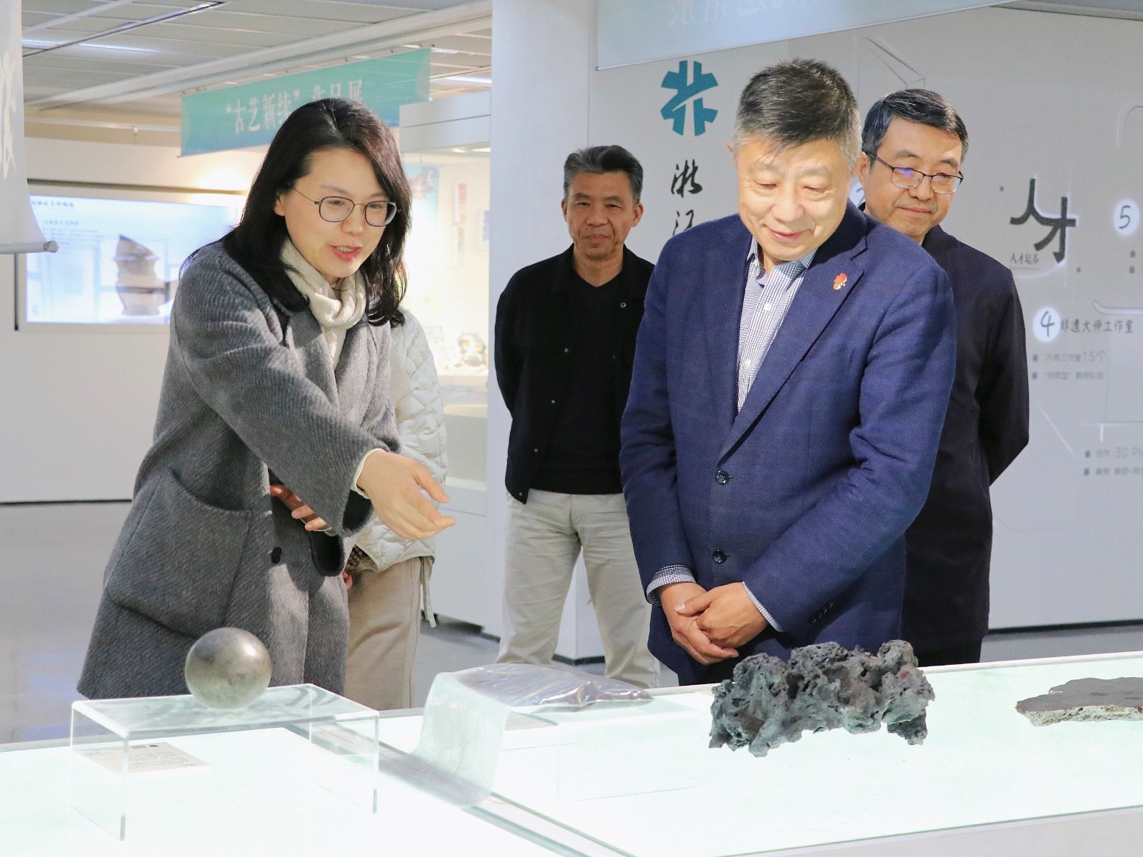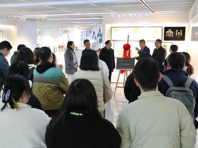 与会嘉宾先参观了“古艺新续”——手工艺校企合作成果展,手工艺学院党总支书记钟黎介绍了展览区域与学生作品,充分展现了学校深厚的文化底蕴与独特的教育资源。此次展示聚焦学校在传统文化传承、现代教育创新实践等方面的卓越成就,为即将揭牌的首批中国游学基地增添了丰富的内涵与背景铺垫。