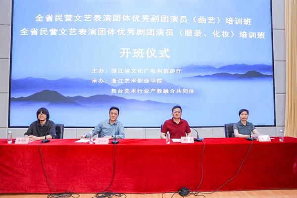 周应中对省文化广电和旅游厅的长期指导与支持表示感谢,对来自全省各地的学员们表示欢迎。他介绍了我校的办学历史、专业建设和承担省文艺表演团体的培训经验。金宇华强调了民营文艺表演团体在全省的重要位置,回顾了省文化广电和旅游厅十余年来对全省民营文艺表演团体的坚定扶持,介绍了浙艺在培训领域的成熟经验,要求学员们要遵守各项培训纪律。