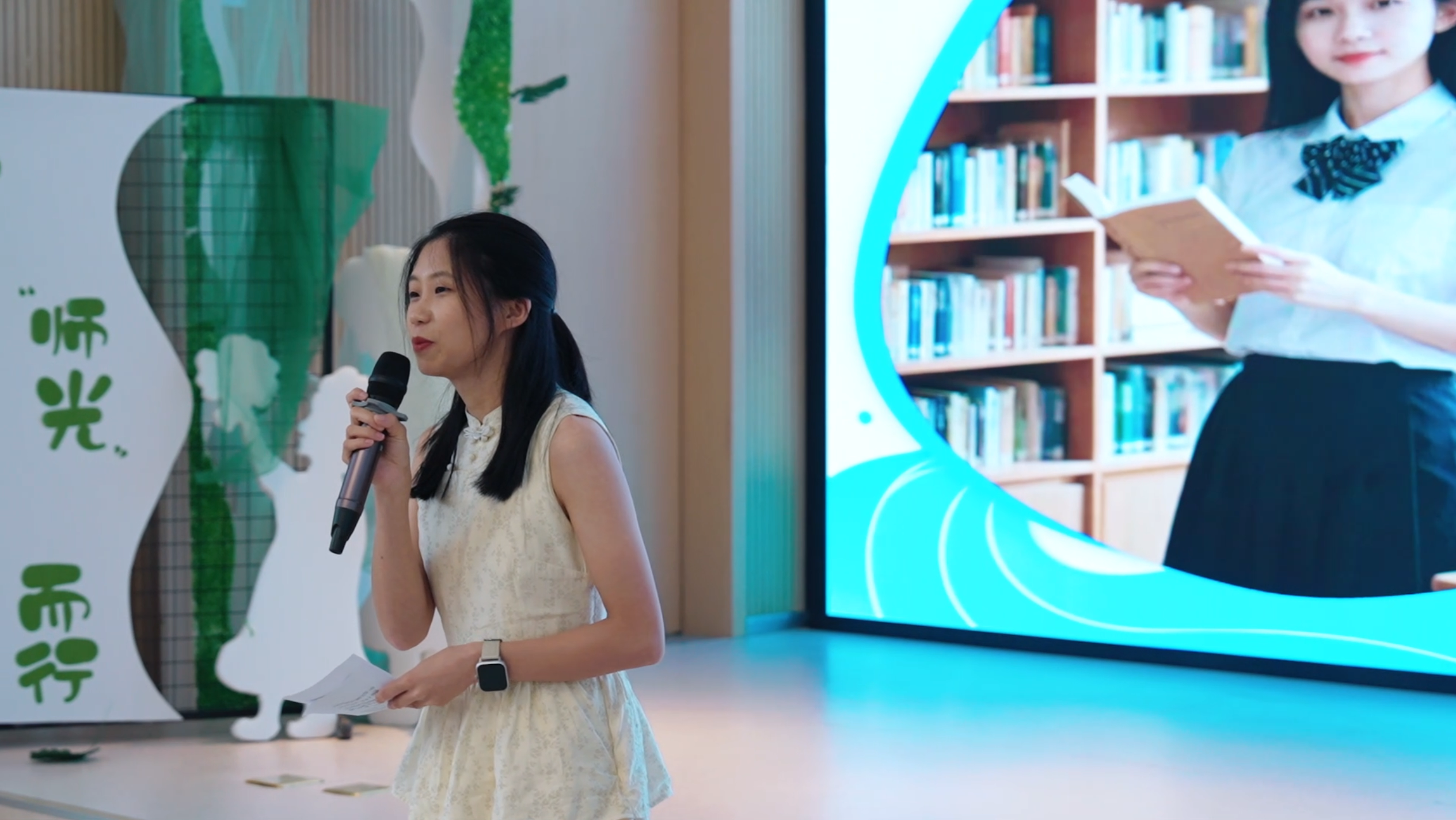 钱塘实验幼儿园园长陈英及3位教师代表与新生们进行了亲切交流。她们结合自身在专业选择、大学学习阶段的亲身经历,娓娓道来,拉近了与同学们的距离。3位老师轮流分享了入职后与孩子们相处的温暖教育故事,生动展现了幼儿教师工作的专业性与幸福感,让新生们对未来的职业角色有了更具体、更感性的认知。