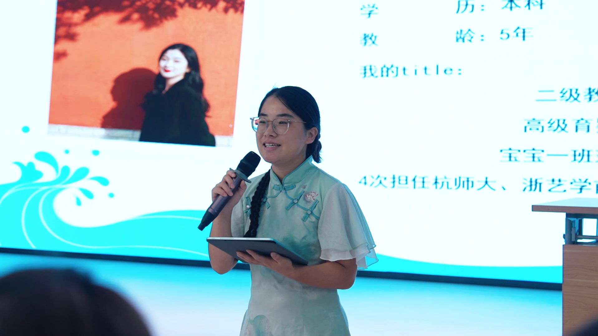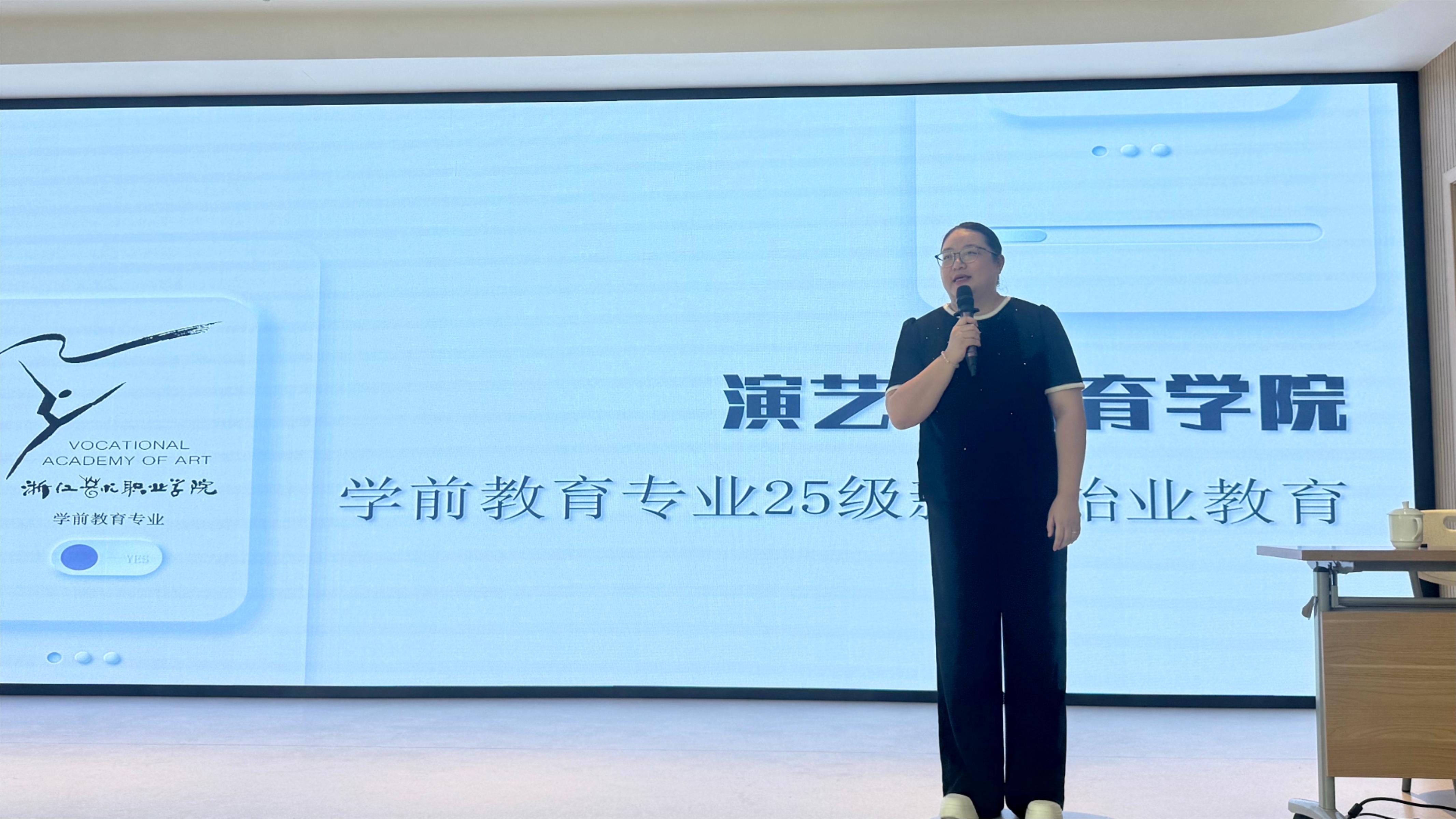 学前教育教研室主任卢茜向新生们介绍了教研室授课教师团队,并梳理了未来三年的课程设置、实习安排、校内外专业活动以及各类重要赛事。她结合行业发展趋势,讲解了专业升学与就业前景,同时分享了优秀毕业生的成长经历与发展现状,激励新生们树立专业信心,明确学习方向。