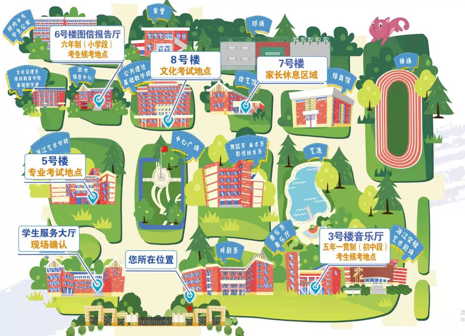(2)候考安排:初中段考生在3号楼音乐厅候考,小学段考生在6号楼图信报告厅候考。请考生根据《准考证》上规定的时间和地点,持身份证(户口本)、准考证提前进行检录、候考。逾期作自动放弃考试处理。
