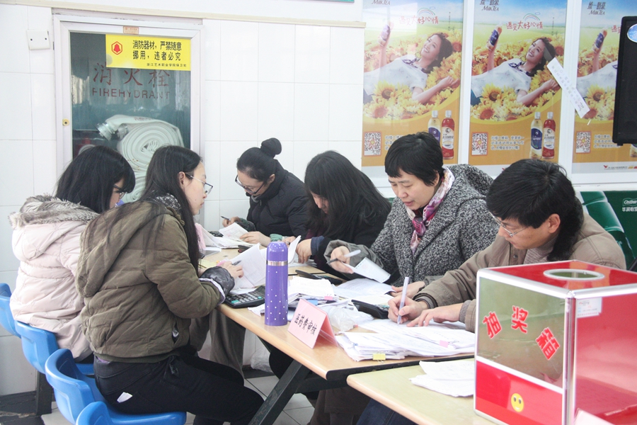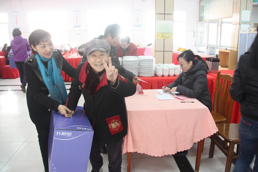 团拜会上还举行抽奖活动,为获奖者颁发奖品。学院财务处、医务室等部门工作人员还实行现场“一条龙”服务,为老同志们报销医药费。