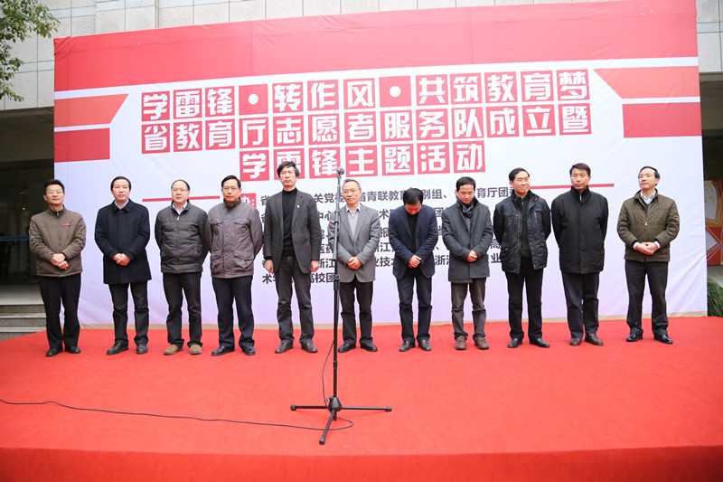3月5日,省教育厅志愿者服务队成立暨学雷锋主题活动启动仪式在滨江高教园区立业园举行。活动由省教育厅机关党委、省青联教育界别组、省教育厅团委主办,省教育发展中心和我院团委承办,省教育考试院、浙江教育报刊总社、省教育技术中心和滨江区各高校等参与。
