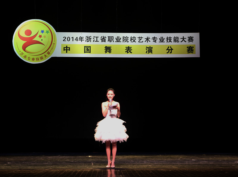 5月14日,由浙江省教育厅主办、浙江艺术职业学院承办的2014年浙江省高职高专院校艺术专业技能大赛暨全国职业院校技能大赛选拔赛中国舞表演分赛项在浙江艺术职业学院实验剧场举行,来自全省六所学校的二十位选手参加比赛。大赛邀请省内舞蹈界名家担任评委。这场“舞林大会”群雄争霸,每个参赛选手纷纷使出浑身解数,力求在舞台上表现最佳水平。
