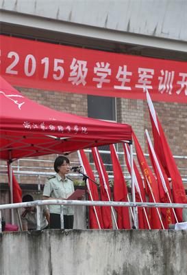 朱海闵为新生作了军训动员讲话,希望同学们吃得起苦,严守纪律,虚心学习,牢记安全。她以中国人民抗日战争暨世界反法西斯战争胜利70周年大阅兵讲起,号召同学刻苦训练,听从指挥,经得起历练,成为纪律严明、善于协作的新一代浙艺人。并向参与军训的全体教官表示了崇高的敬意和诚挚的感谢。