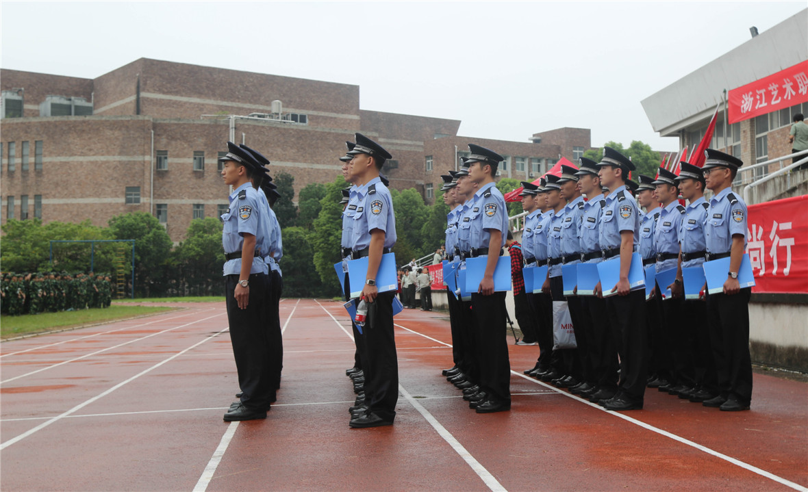 曹东明代表全体教官感谢浙江艺术职业学院全体师生对警院师生的信任。并向受训学生承诺,一定会认真施训、严格落实军训计划,希望大家团结协作,听从指挥,一起圆满完成此次军训任务。