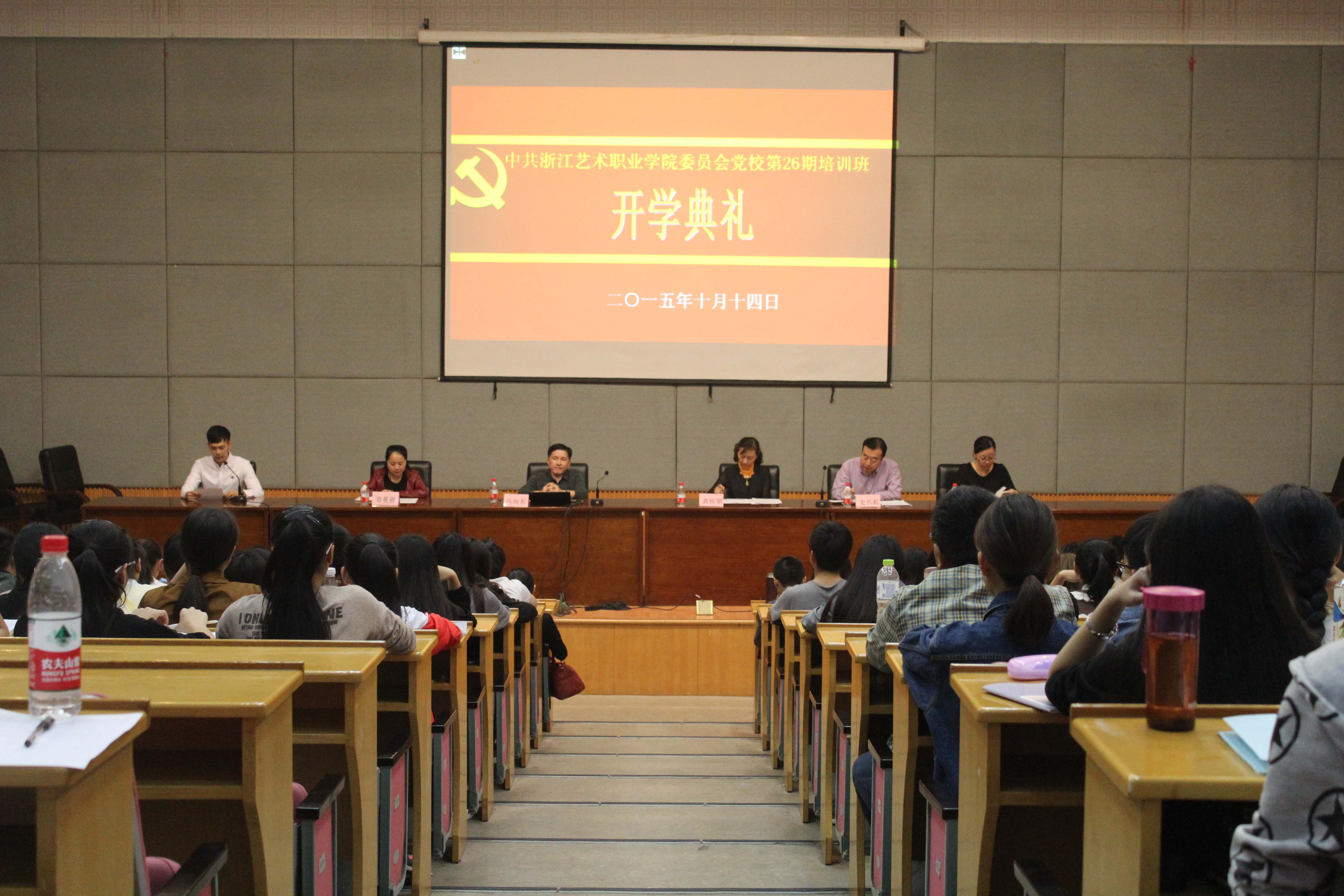 10月14日晚,浙江艺术职业学院党校第二十六期培训班开学仪式在图信中心报告厅举行,171名来自各系的党校学员将参加为期两个多月的培训,院党委副书记、党校副校长黄杭娟,党校校务委员、各系党总支副书记、党校班主任、党校任课老师和全体党校学员出席仪式,基础教学部副主任史长虹主持开学仪式。