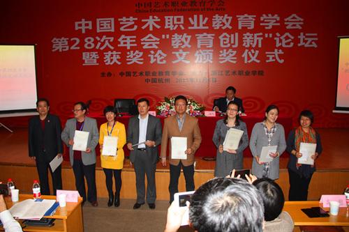 学会副会长、论文评审组成员、浙江艺术职业学院原党委书记林国荣宣读了中国艺术职业教育学会第28次年会论文评审获奖名单:苏州艺术学校王善春撰写的《艺术职业学校专业实践服务社会模式与运行机制研究》、汕头文化艺术学校林锦航撰写的《潮剧剧目教学的回顾与思考》、浙江艺术职业学院高澄明、陈加斌、齐磊等撰写的《浙江传统音乐非物质文化遗产与现代高等音乐教育融合的路径分析》等27篇文论文获一等奖;苏州市艺术学校李玉侠撰写的《试论五年制昆曲表演专业课程教学改革的有效途径》、浙江艺术职业学院毛肄撰写的《艺术类高职院校专业基础理论课程教学改革刍议——以《钢琴艺术史》课程为例》等44篇论文获得二等奖;苏州市艺术学校何玮撰写的《无时无处不德育》等73篇论文获得三等奖。学会领导分别为论文获奖者颁奖并合影留念。