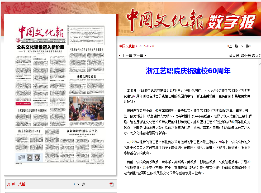 媒体关注浙艺建校60周年校庆(有更新)