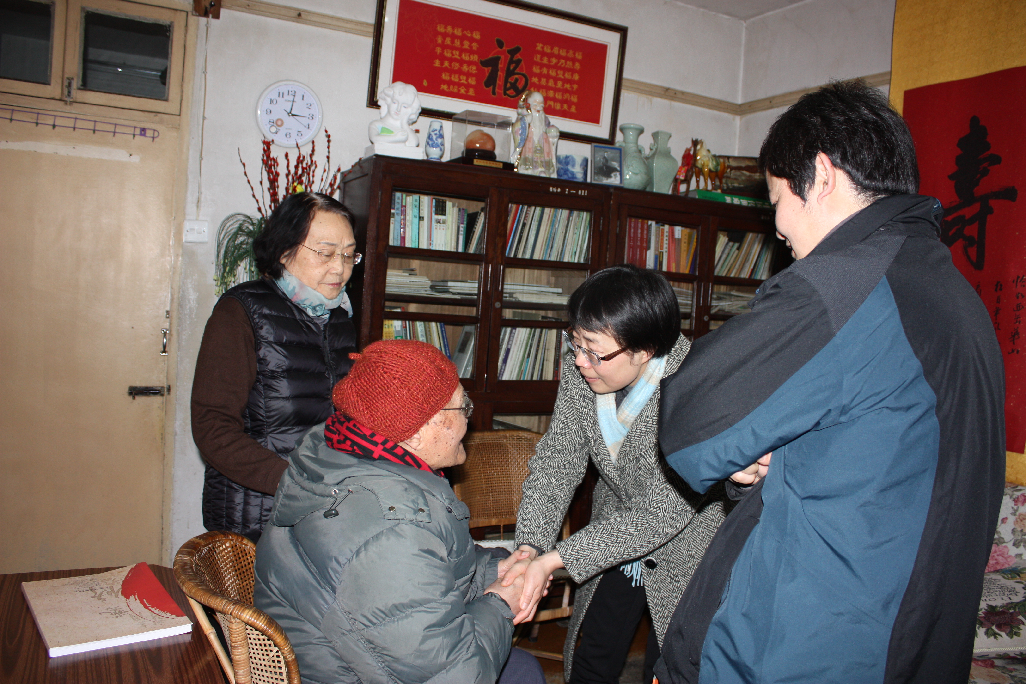 2月4日下午,浙江艺术职业学院党委书记朱海闵、院长张建国专程看望103岁高龄老校长张西华,转达学院党政领导班子和全体教职员工对老校长的诚挚问候和美好祝愿,衷心祝愿老校长春节快乐、身体健康。