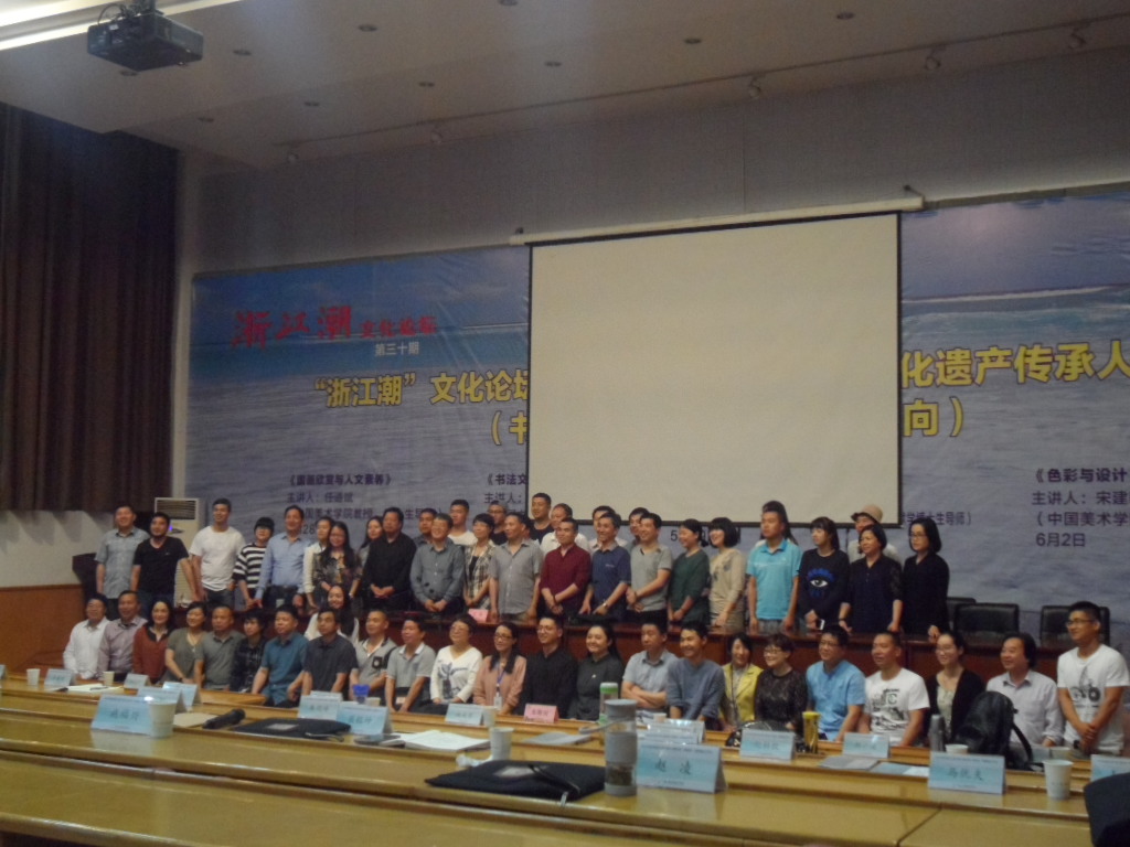 5月27日,中国非物质文化遗产传承人群培训班开班。第二天,浙艺就把名家大师请进校园,为培训班学员和在校师生开讲。5月28日上午,中国美术学院教授、博士生导师任道斌上了周末第一课,《国画欣赏与人文素养》;5月29日上午,中国书协副主席、浙大教授、博士生导师陈振濂在浙艺为非遗传承人群和师生开讲《书法文化与非遗保护》;下午,来的是复旦大学图书馆研究馆员、古籍研究所教授、博士生导师吴格,他演讲的题目是《中国古籍的复制和流传》。三场讲座也是浙江潮文化论坛系列讲座内容。
