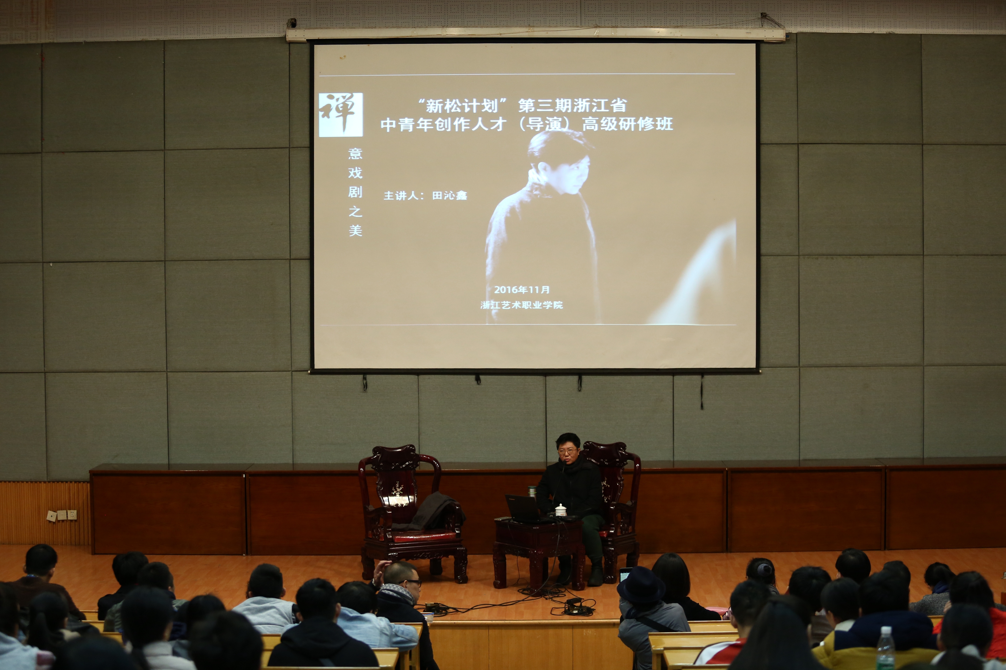 田沁鑫表示,她本人非常喜欢浙江喜欢杭州,浙江艺术职业学院承办“新松计划”高研班培养各类戏剧人才是非常好的事。浙江戏剧发达,田沁鑫说,小时候看过浙江一个婺剧《打棍出箱》,非常棒。历史上浙江是文人骚客聚居的独特省份,戏剧文化也有丰厚积累,包括汤显祖这样对中国戏剧做出过杰出贡献的大剧作家,他在遂昌做过县令,有大量创作。这样历史丰厚的戏剧原创人才聚集的地方,舞台创作的内容建设能获得省里的重视、省文化厅的重视,对浙江戏剧发展来说是件好事。为高研班授课,我们就是来添砖加瓦的。