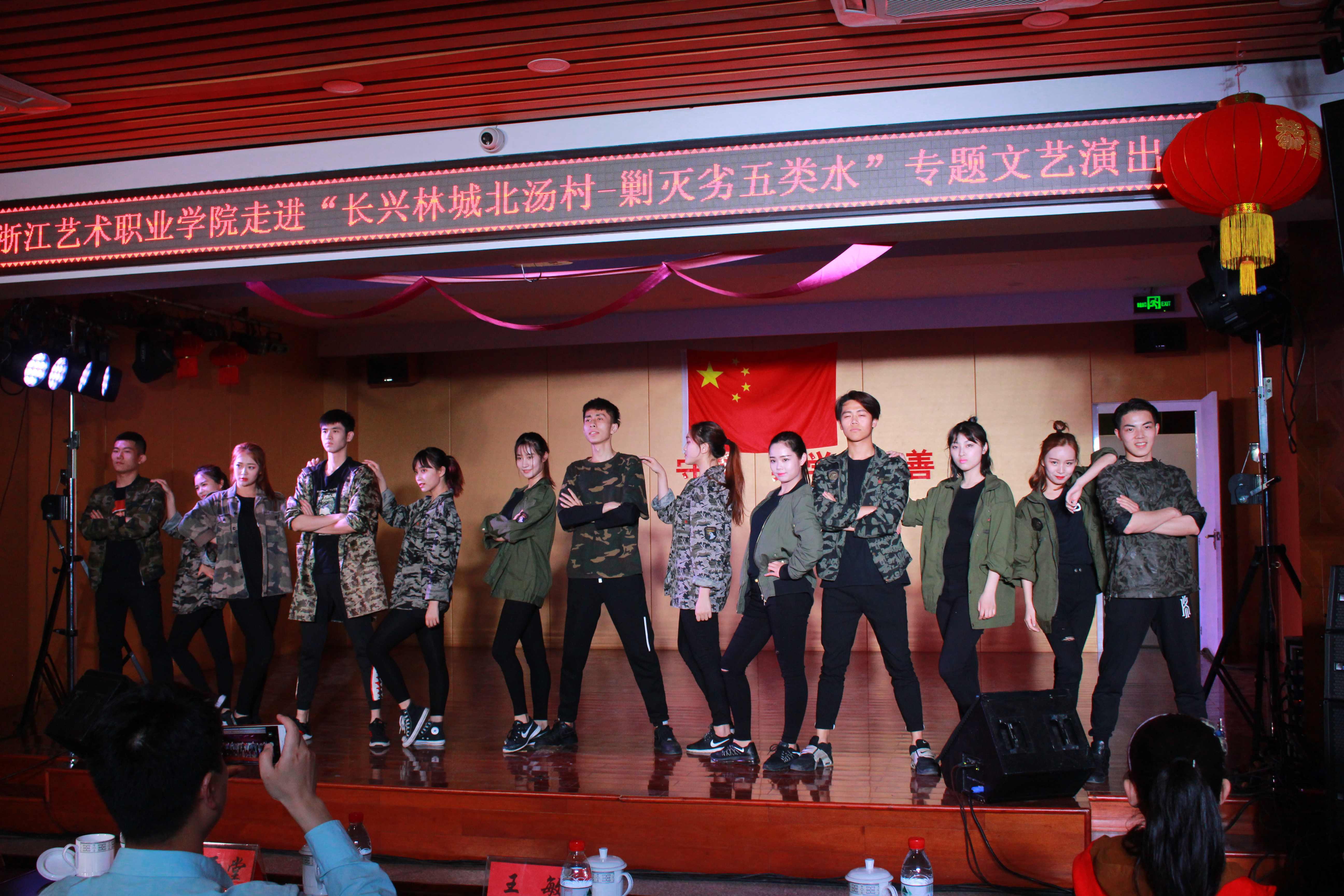 为使演出节目更接地气,当天下午,师生们在北汤村剿灭劣V类水现场实地采风,体验感受。当晚剿灭劣V类水专题文艺巡演在村文化礼堂进行,戏剧系15表演艺术班和14越剧班的同学们为当地群众作了精彩表演。当地村民挤满了整个礼堂。戏曲、声乐、舞蹈、小品等精彩节目博得村民们阵阵掌声。尤其是音乐诗朗诵《五水共治•美哉长兴》等几个剿劣主题节目,观众拍手叫好热烈。