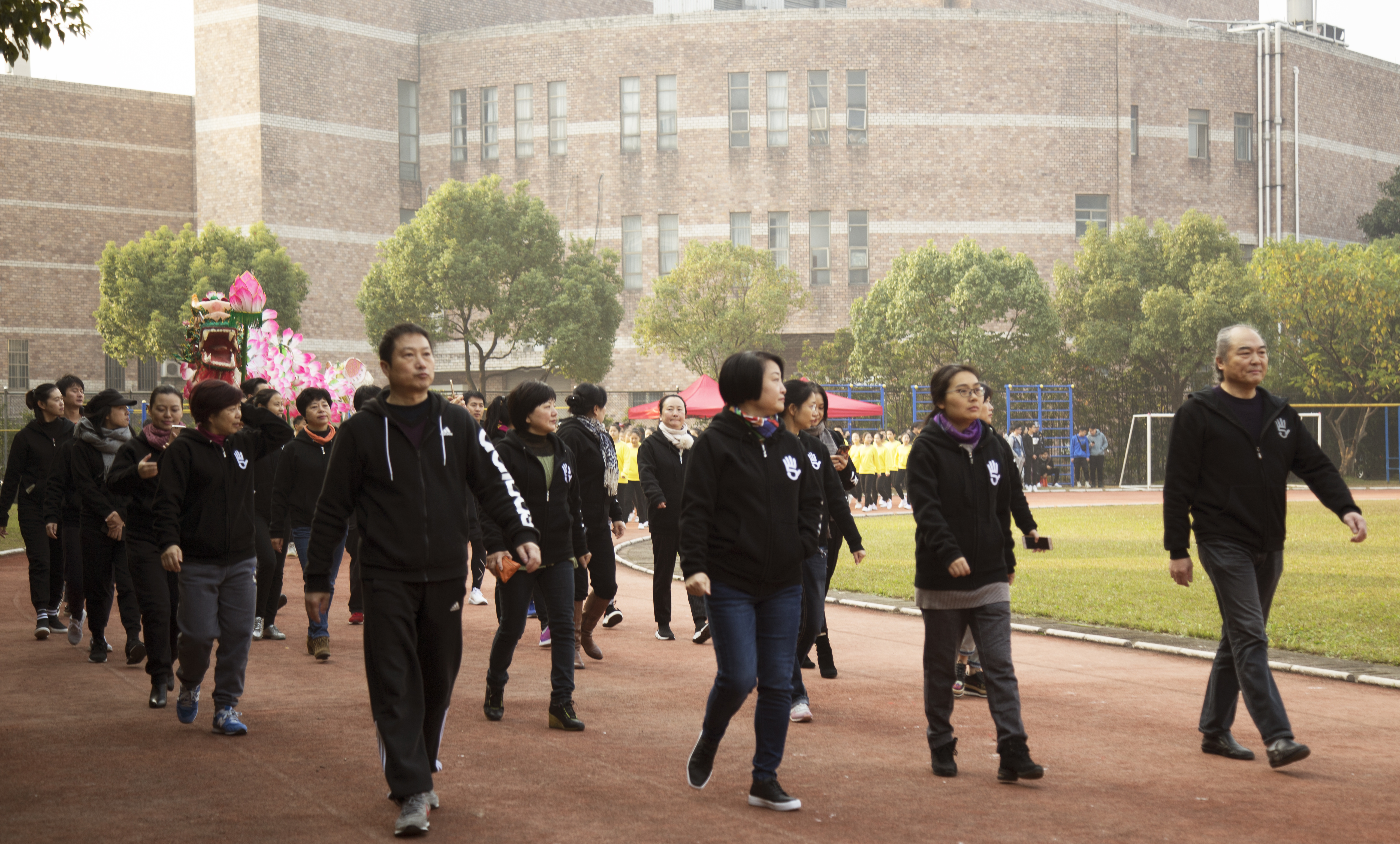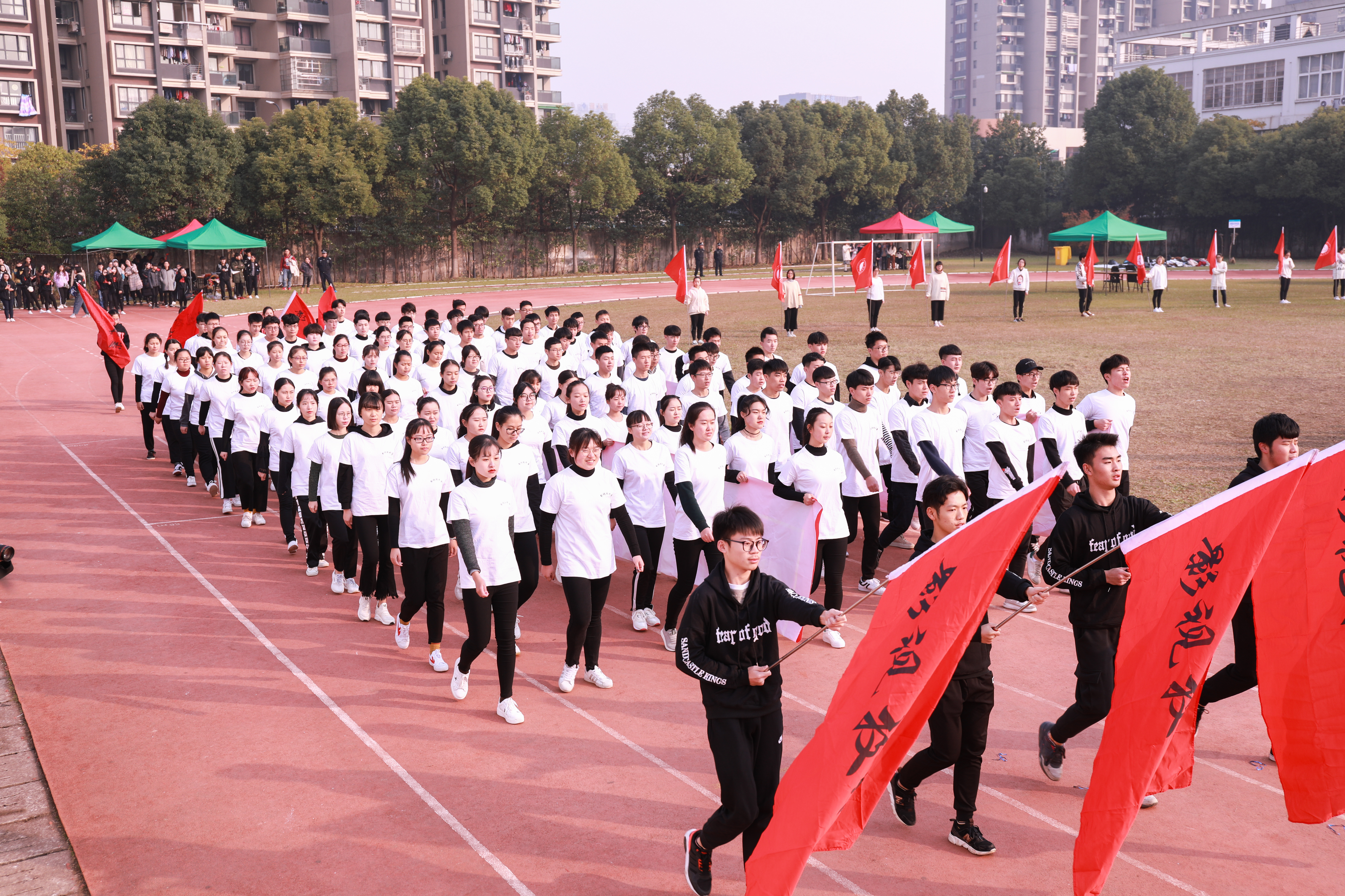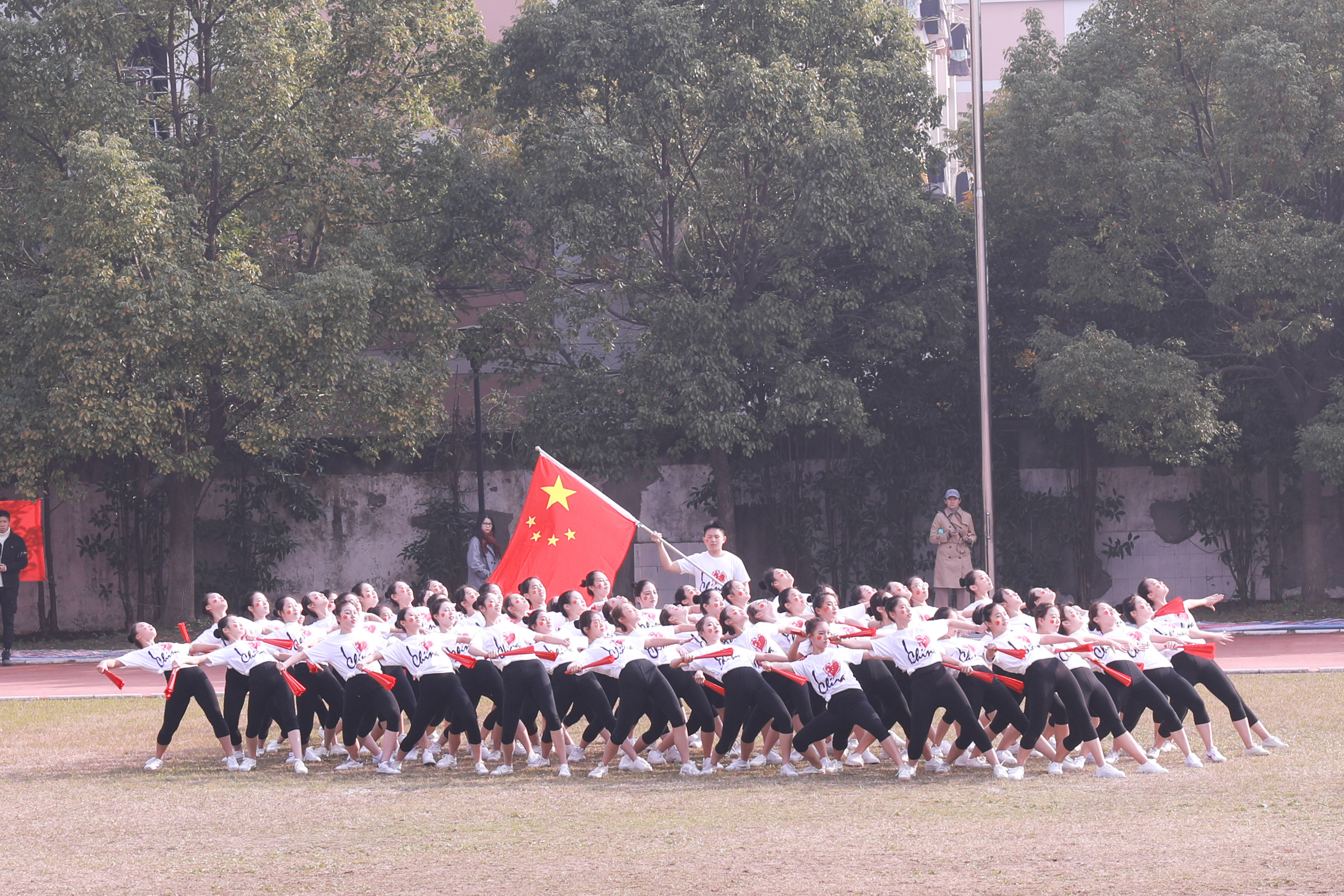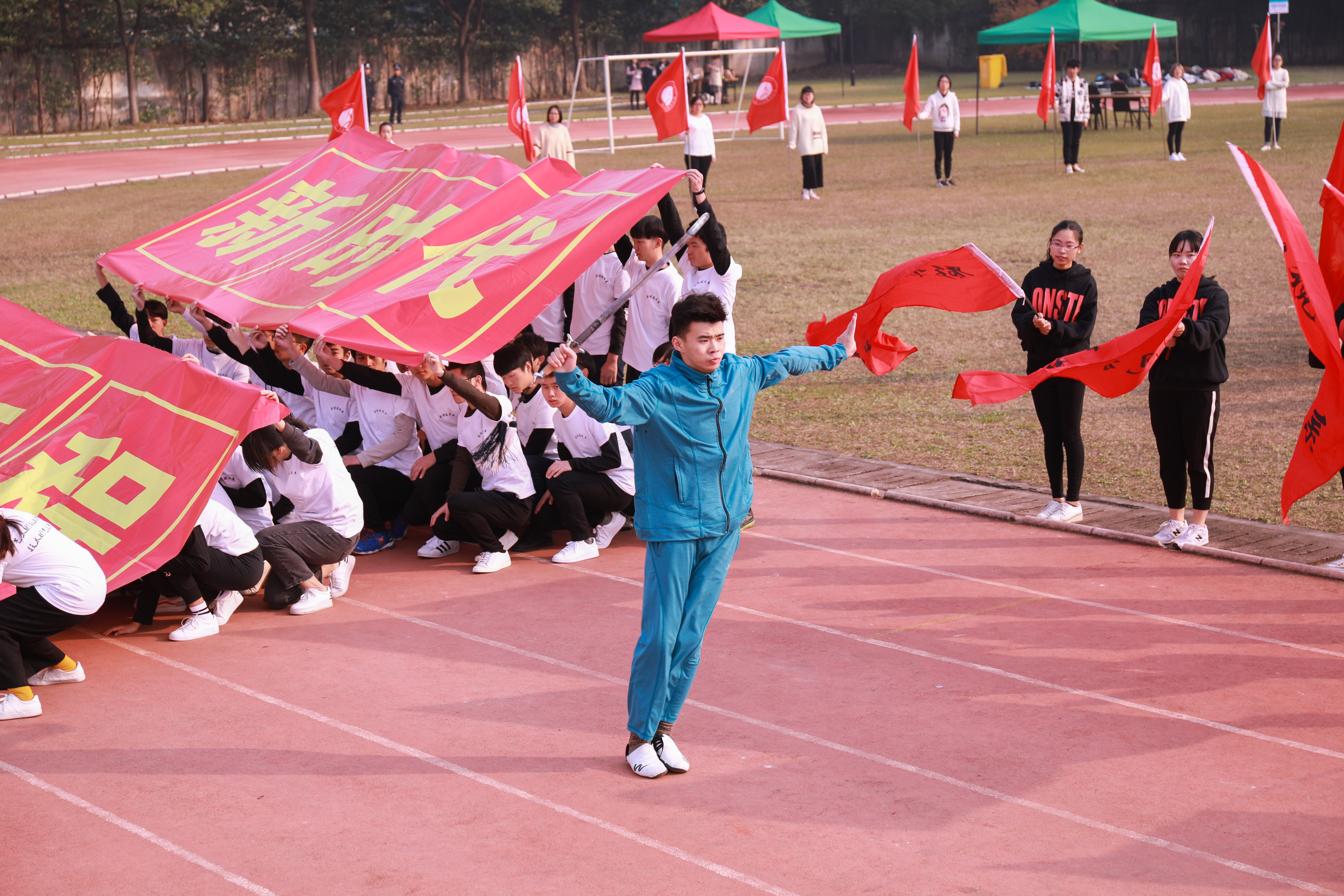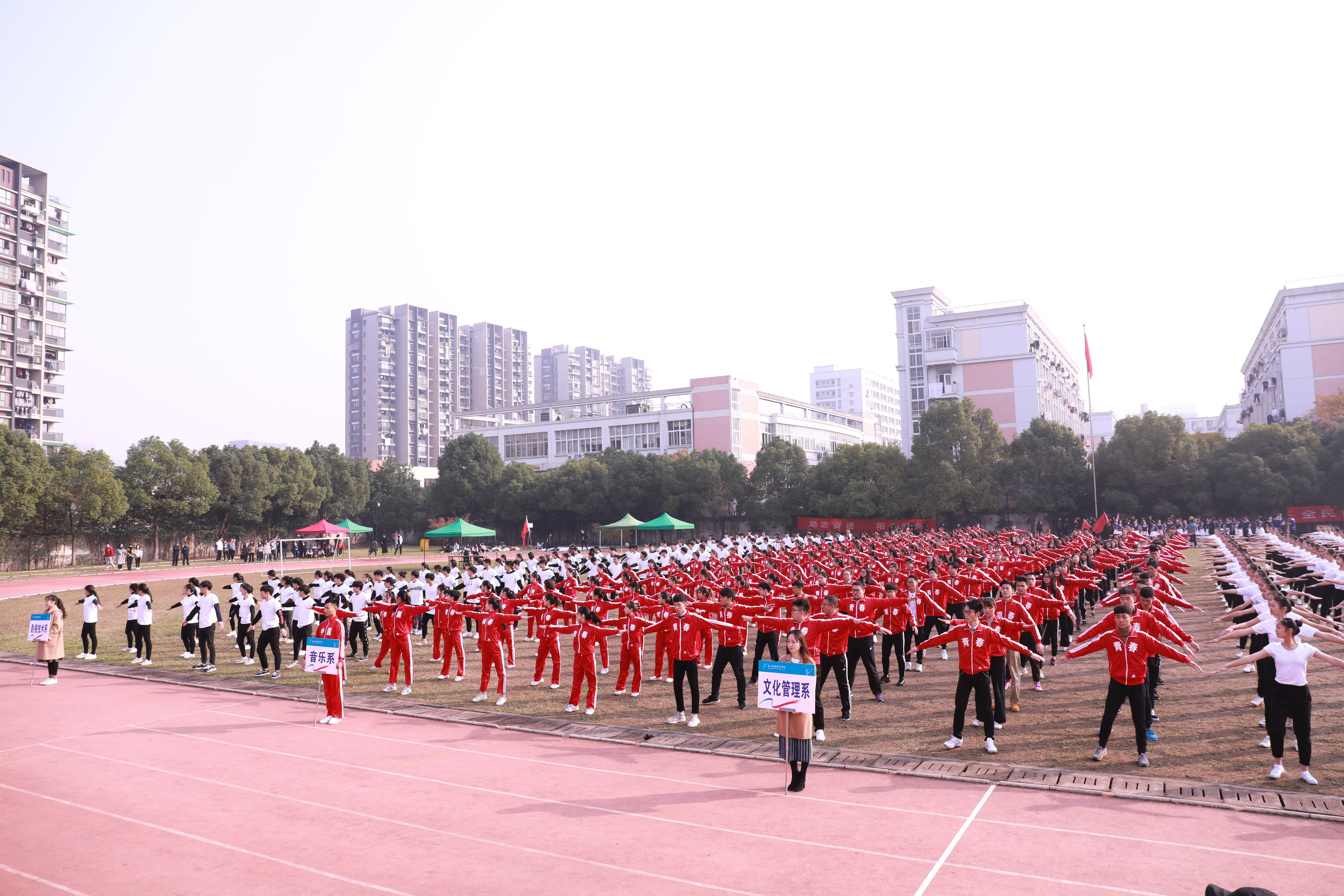 开幕式上进行了广播操和团体操的比赛。广播操比赛中,同学们用整齐规范,有力到位的动作展现了浙艺学子积极进取的精神风貌。团体操的比赛堪称精彩绝伦,各系学子精心准备,结合专业发挥了各自的特长,有舞蹈,有RAP,展现了艺术与体育的糅合之美和综合类艺术院校学子的多才多艺。同学们的激情,温暖了这个冬日。相信即使在若干年后,浙艺田径场上的每一幕都是值得回忆的青春。
