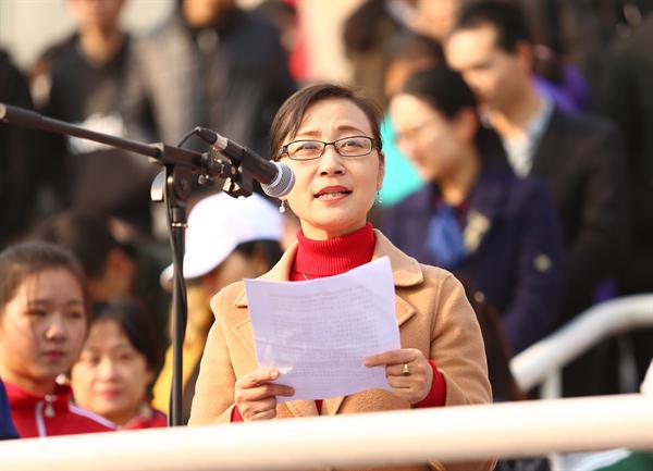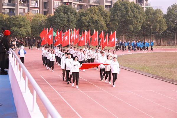 运动会在雄壮的国歌声中开幕。黄杭娟致开幕词。她提到,在全党上下掀起学习宣传贯彻落实党的十九大精神热潮之际,我们迎来了学校第十四届田径运动会,近千名浙艺运动健儿将在接下来两天的时间里,弘扬体育精神,展示浙艺风采。她向为筹办本届运动会辛勤付出的全体工作人员表示崇高的敬意。她强调,作为学校每年一届的重大体育赛事,田径运动会对于促进学生的全面发展、增强师生体质、推动学校体育事业发展、丰富校园文化生活起着积极作用。她希望,全体运动员能以最佳状态投入比赛,赛出风格,赛出水平,同时遵守体育道德,遵守竞赛规则,尊重裁判,尊重观众,取得运动成绩和精神文明双丰收。通过举办运动会,全校形成热爱体育运动、弘扬体育精神的浓厚氛围,让体育运动成为大家健康工作、快乐生活的一部分。