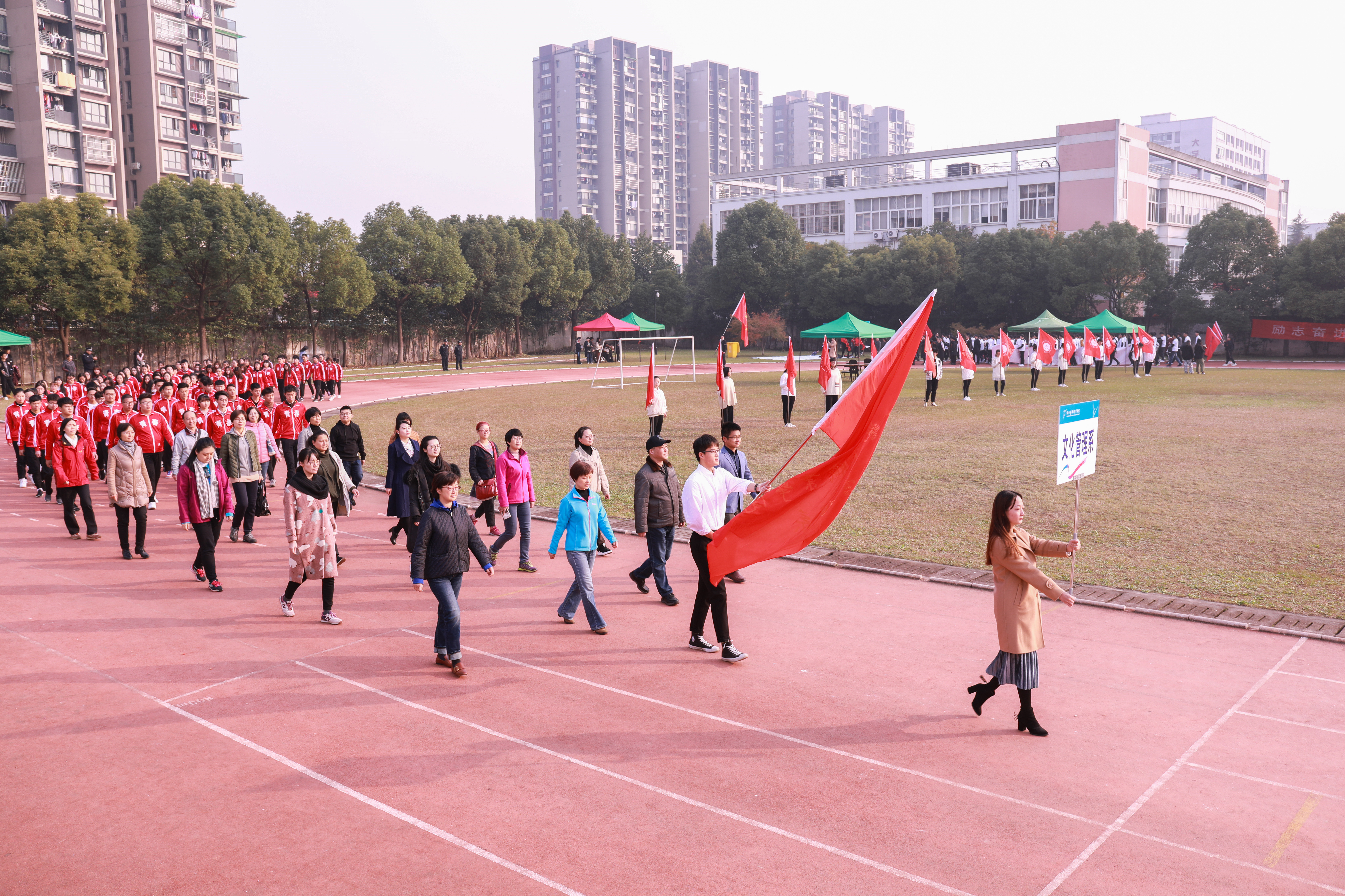 11月23日,以“励志奋进,阳光尚美”为主题,以“全民体育,青春浙艺”为口号的浙江艺术职业学院第十四届运动会在田径场开幕,院长黄杭娟,副院长章轲、夏开堂、沈军甫出席开幕式,全院师生到场参加。沈军甫主持仪式。