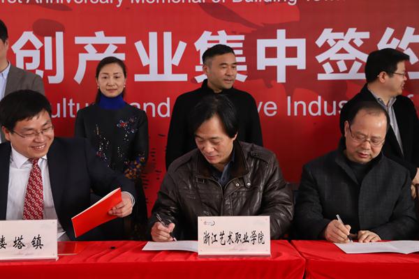 浙江艺术职业学院与楼塔镇人民政府的校地文化合作签约为加快地方文化发展,注入高校办学特色元素,实现资源互补、互利互惠、双向促进、共同发展,萧山区楼塔镇人民政府与浙江艺术职业学院本着“平等互利、优势互补、真诚合作、务实高效”的原则,并就合作事项达成协议。沈恒为校地合作签约,为浙江艺术职业学院教育实践基地揭牌。一同签约合作的高校还有浙江中医药大学和中国美术学院。