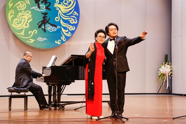 胡素银和现场声乐学生合唱的《我的祖国》为音乐会开场。越剧《梁山伯与祝英台》选段《十八相送》,由87级越剧班陈爱菊、周艳演绎,就像婉约清丽的江南之水,曲调柔美深情,是胡素银从教的第一份纪念。浙艺原创音乐剧《五姑娘》选段《爱到永远》,由96级音舞班钱思舒和音乐系党总支专职副书记谢志勇演绎,“想过多少年,盼过多少年”熟悉的唱段令人陶醉;乐清民歌《对鸟》曲调欢快爽朗,节奏自由舒展,由00级音乐表演班冯斯凡演绎;苏东坡的《饮湖上初晴后雨》由93级群文班畲族学生雷莹完成,经典诗词吟唱起来别有一番韵味;纯朴生动的陕北民歌《兰花花》,委婉凄怆的河北民歌《小白菜》,以及《哈达似的白云》分别由04级声乐五年一贯班胡韵、浙江音乐学院贾舒韵和92级社音班袁春演唱,不同风格的民歌展现了不一样的情感。96级音乐班刘伟带来的内蒙民歌《莫尼山》引发了现场小高潮,歌声正如歌词所唱“高入云端”,诉说着大自然的诗篇。