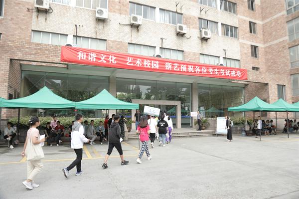 天公作美,天气预报中的“五一”小长假的雨水没有如期而至,这给了1000多名赶到浙江艺术职业学院参加中专及五年一贯制招生专业复试的考生和家长很多方便。4月30日清晨,迎着朝阳,一批批考生在学生志愿者的引导下进入浙艺候考,假日安静的校园顿时生机盎然。