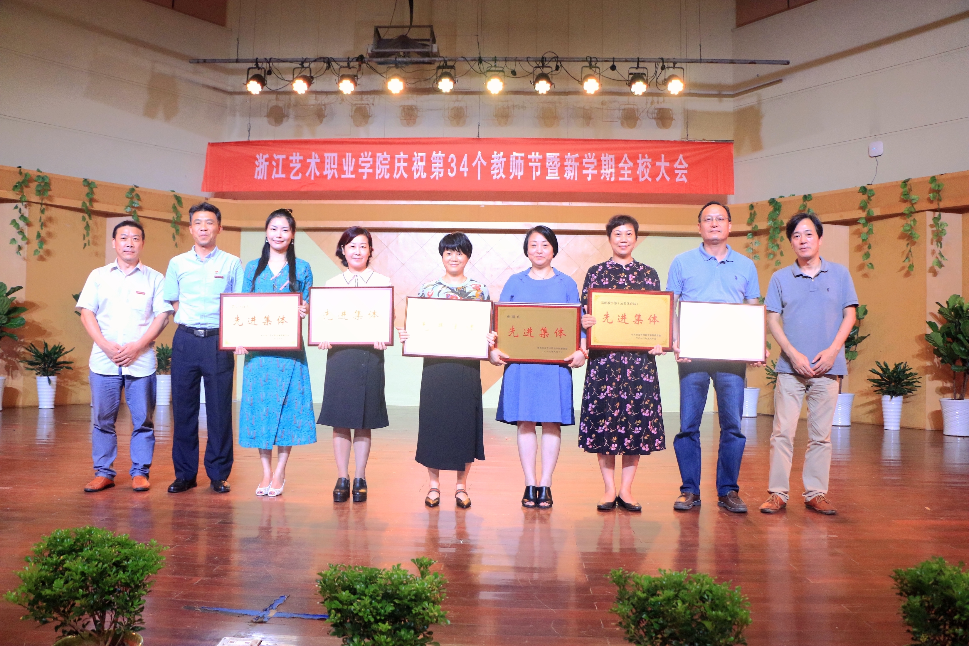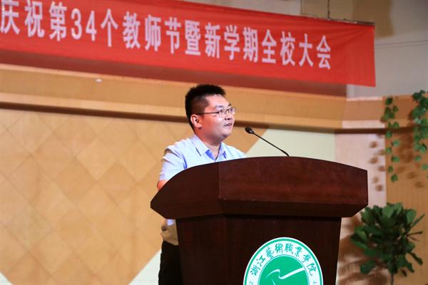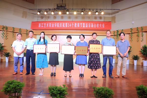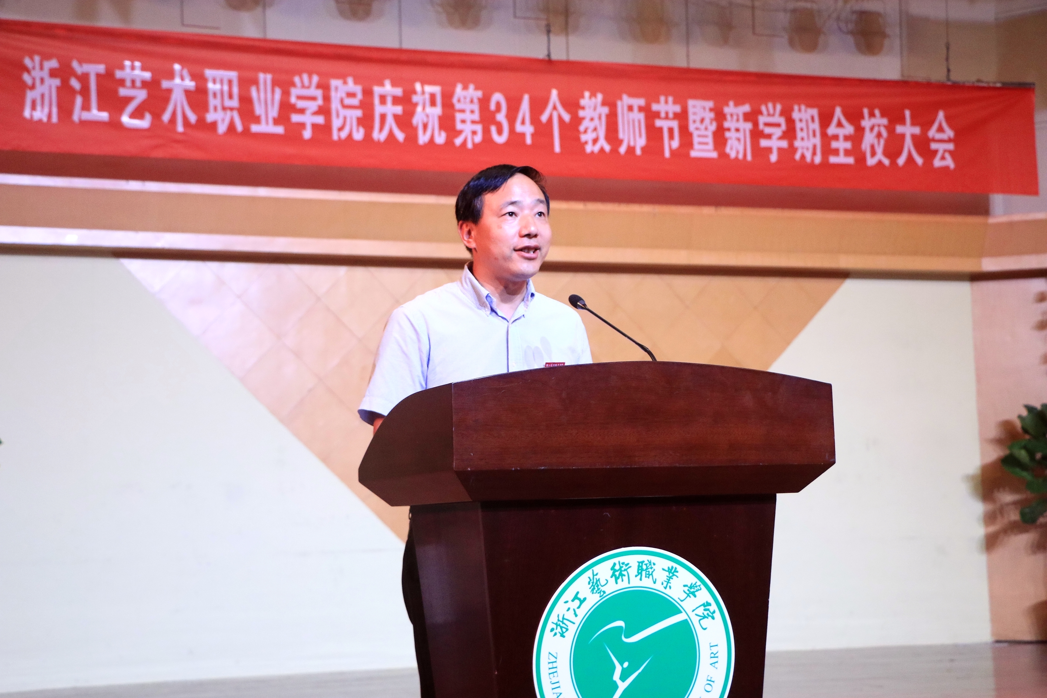 9月19日下午,浙江艺术职业学院庆祝第34个教师节大会暨新学期全校大会在音乐厅举行。校领导朱海闵、黄杭娟、夏开堂、章轲、沈恒、徐芳、沈军甫、王涛、马向东出席,全院教职工参加大会。党委副书记夏开堂主持大会,他代表校党委领导班子向过去一年来在各个岗位上辛勤工作、默默付出,为学校发展和学生成长成才做出不懈努力的全体教职工送上亲切的问候和诚挚的感谢。
