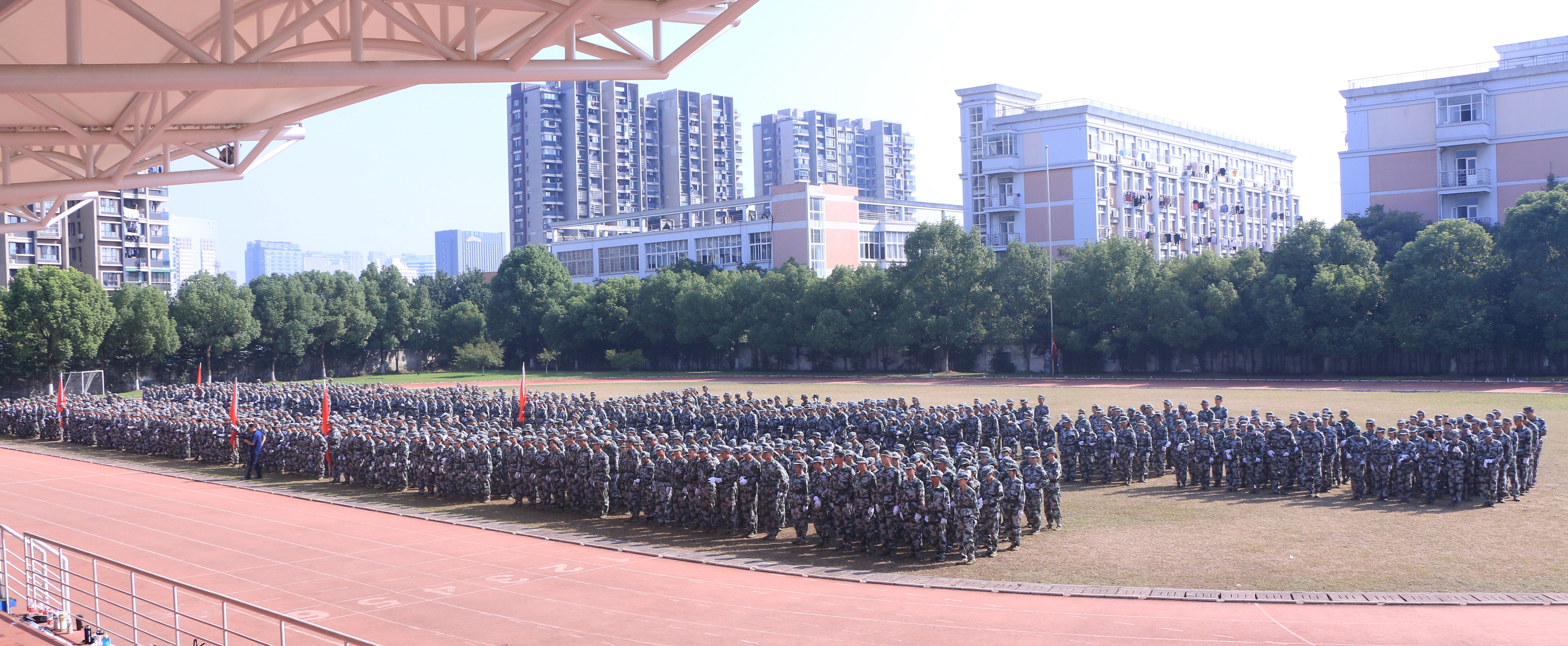 9月30日上午,浙江艺术职业学院2018级高职新生军训闭训仪式在田径运动场举行。初秋的阳光下,1100多名新生精神抖擞,用铿锵有力的声音和飒爽英武的军姿向主席台上的校系领导、班主任、辅导员老师们展示了为期14天的军训成果。校领导朱海闵、夏开堂、沈恒、沈军甫、王涛、马向东等出席仪式。
