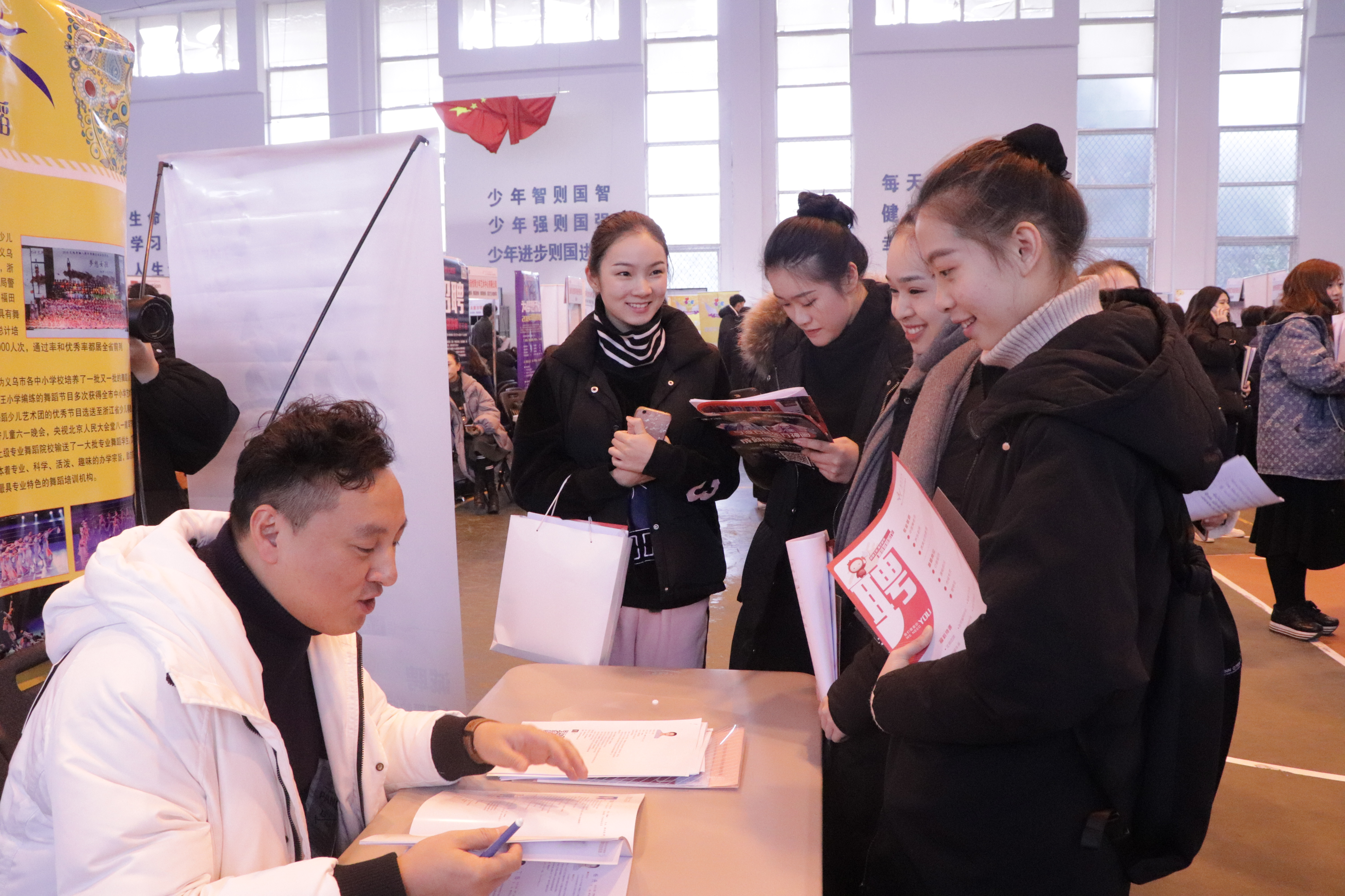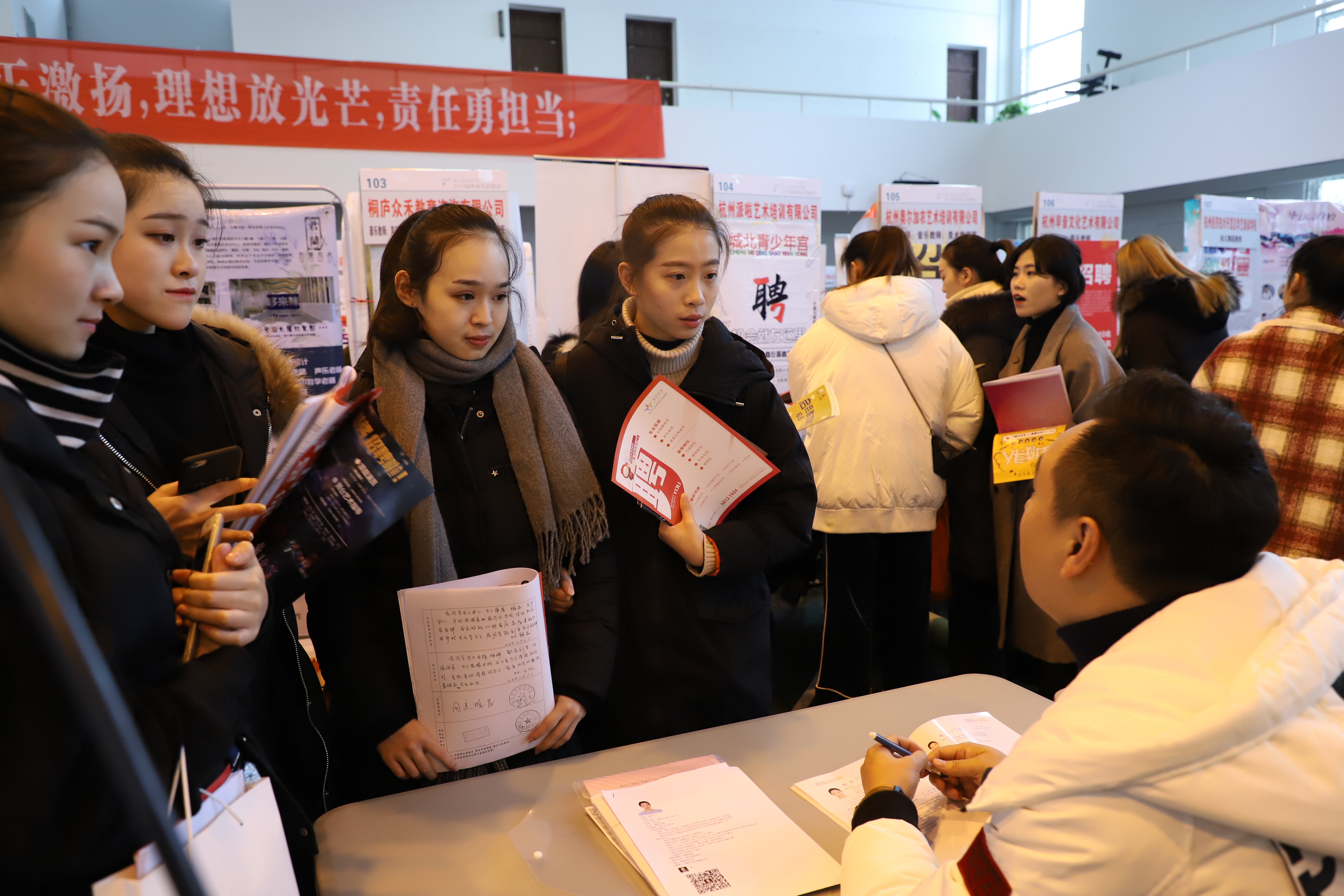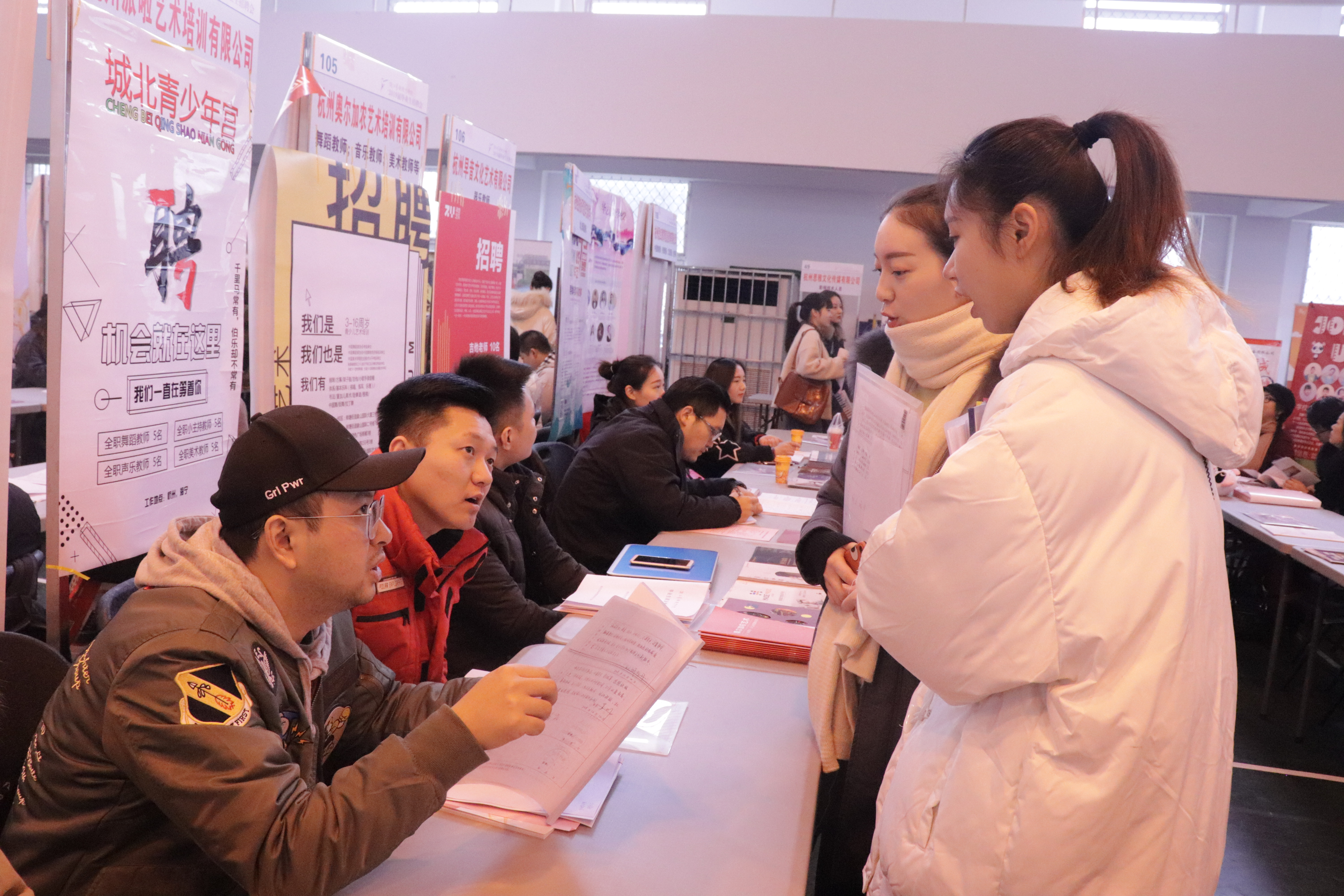 12月14日,浙江艺术职业学院2019届毕业生招聘会在校体育馆举行。200家用人单位提供就业岗位2600多个。浙艺2019届共有专科(高职)毕业生875人,主要有戏曲表演、戏剧影视表演、表演艺术,音乐表演(声乐)、音乐表演(器乐)、歌舞表演、现代流行音乐、音乐制作,舞蹈表演、舞蹈编导(少儿舞蹈),舞台艺术设计与制作、广告设计与制作、服装与服饰设计、环境艺术设计(装饰艺术设计)、动画设计,影视多媒体技术、声像工程技术、音像技术、摄影摄像技术,展示艺术设计、文化创意与策划、公共文化服务与管理、文物修复与保护等23个专业及方向。