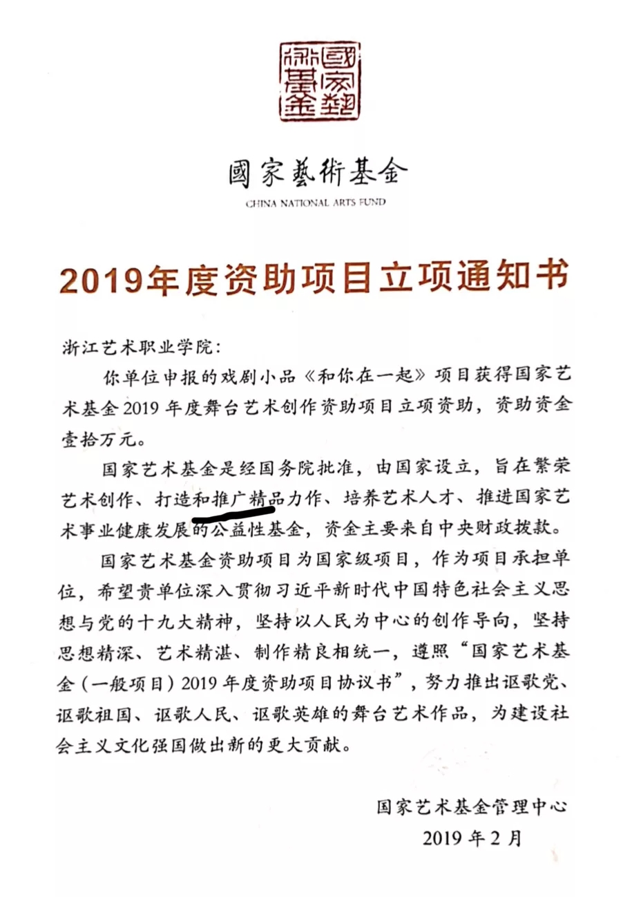 国家艺术基金2019年度资助项目——浙江艺术职业学院原创小品《和你在一起》作品研讨会12日在浙艺召开,上海戏剧学院表演系教授、联合国教科文组织国际剧协终身会员、中国国家话剧院剧目顾问、浙艺戏剧影视表演专业艺术总监范益松,浙江音乐学院戏剧系主任、教授安怡,杭州市话剧团艺术总监、国家一级演员王小红,浙江省文化馆副馆长、研究馆员王布伟等出席研讨会。浙艺戏剧系戏剧影视表演省级专业带头人、副教授那刚携主创团队听取了专家们的意见和建议。