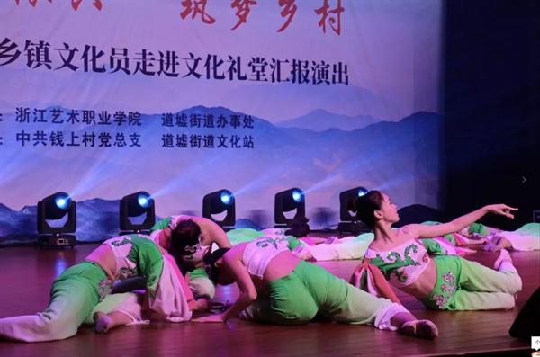 壮丽70年,文化礼堂行,这个夏天,还未放暑假,浙江艺术职业学院师生就厉兵秣马,为暑期赶赴浙江各地农村文化礼堂做准备,助力乡村文化振兴,献礼中华人民共和国成立70周年。7月7日,文化管理系17、18级定向培养乡镇文化员走进上虞道墟钱上村,进行综合汇报演出;7月11日,舞蹈系上演舞蹈专场。两场演出,演员青春,歌舞欢快,现场掌声阵阵、气氛热烈。