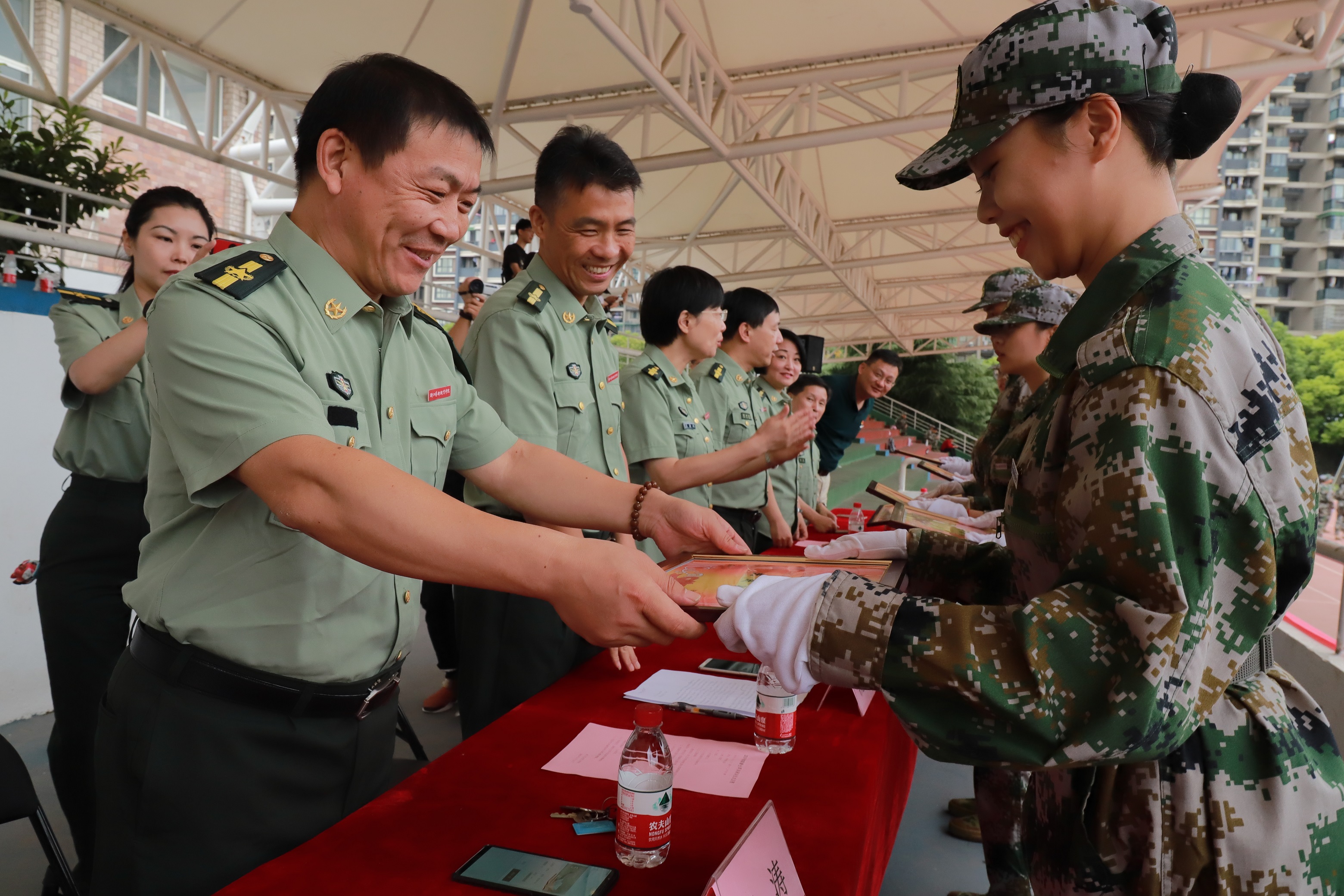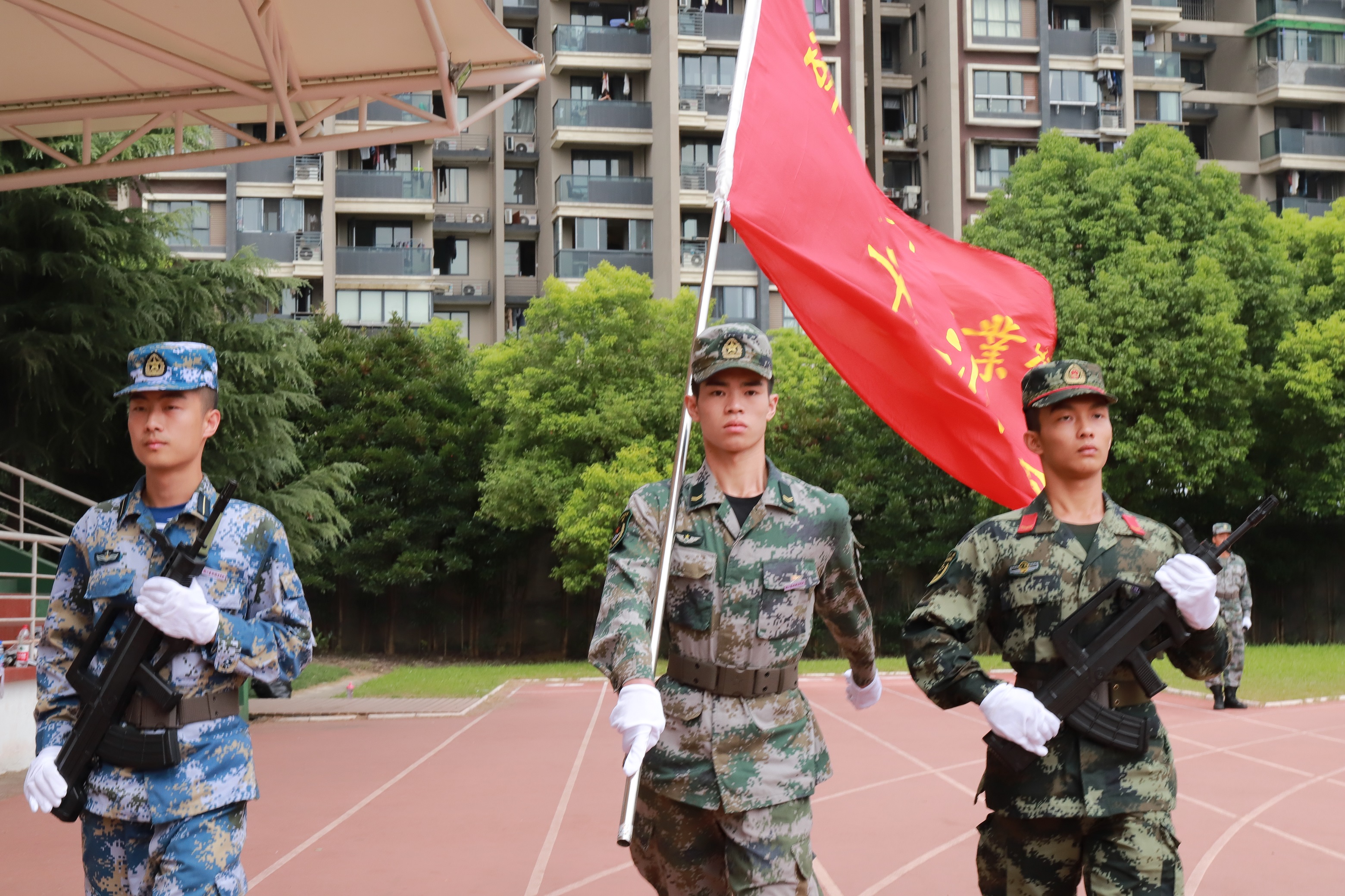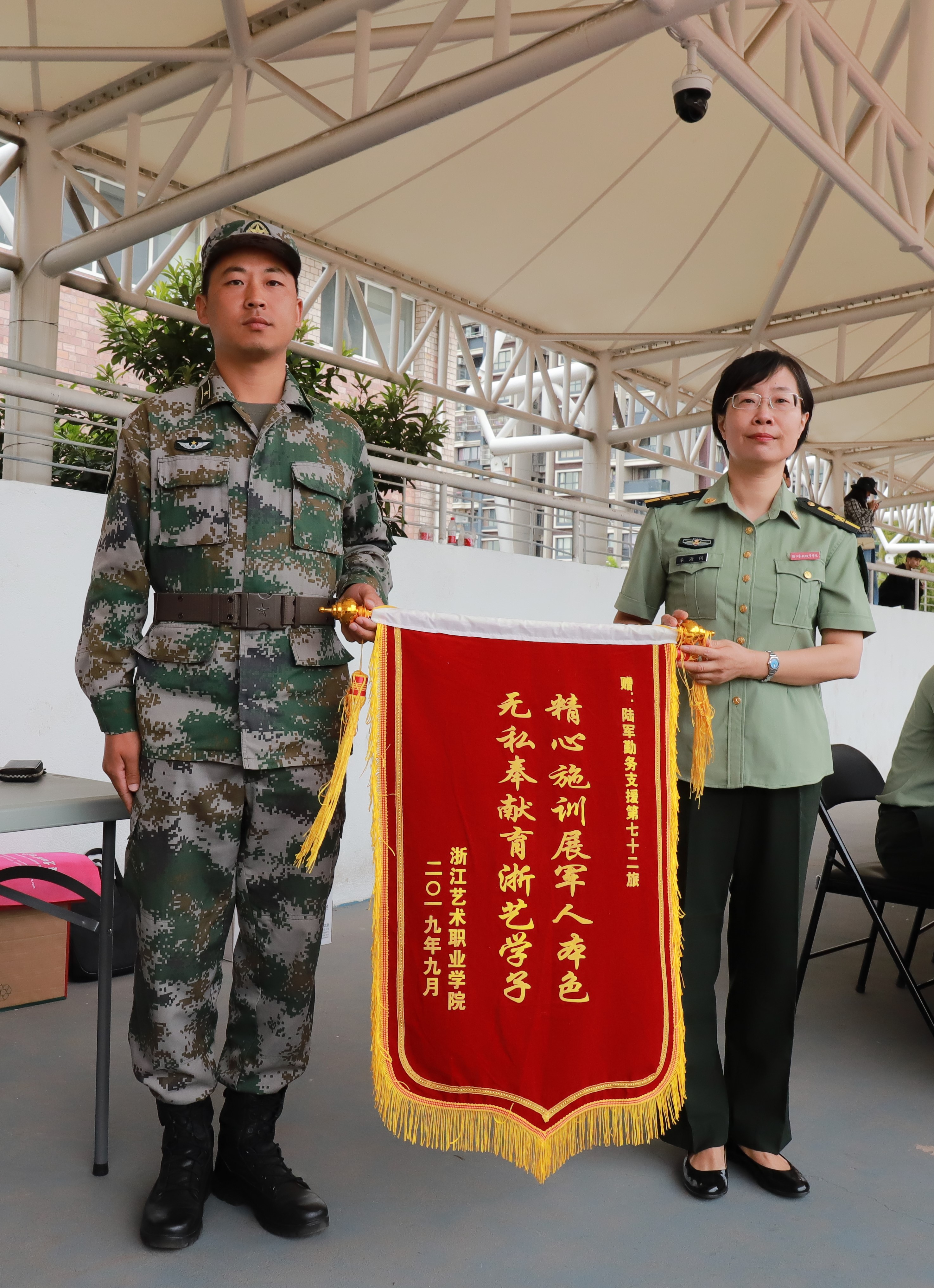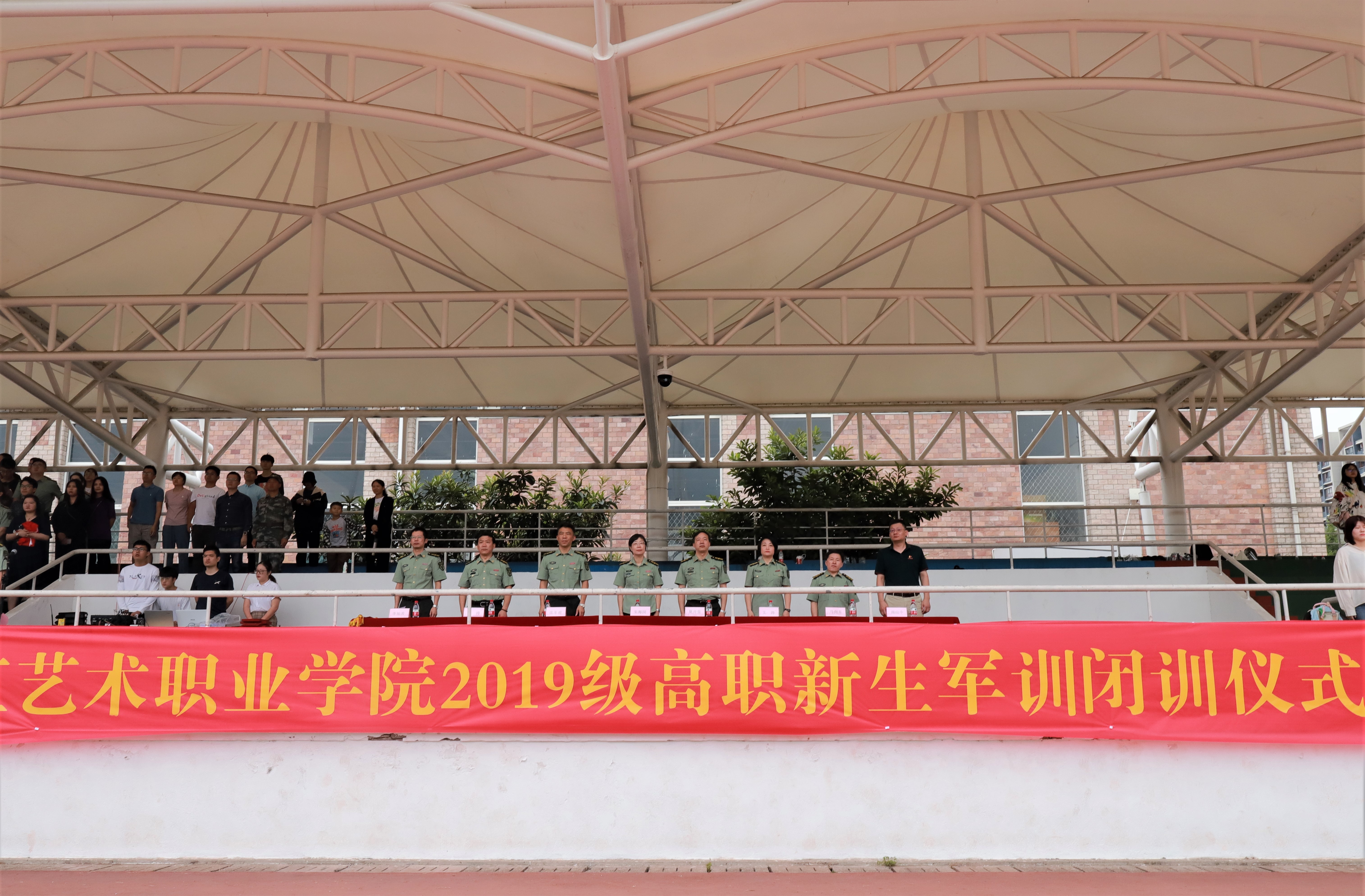 9月21日上午,浙江艺术职业学院2019级高职新生军训闭训仪式在学校田径场举行。校党委书记朱海闵,党委副书记夏开堂,党委委员、副院长沈军甫、支涛,党委委员、组织部部长王涛,党委委员、宣传部部长马向东,相关职能系部负责人、辅导员、班主任参加闭训仪式。