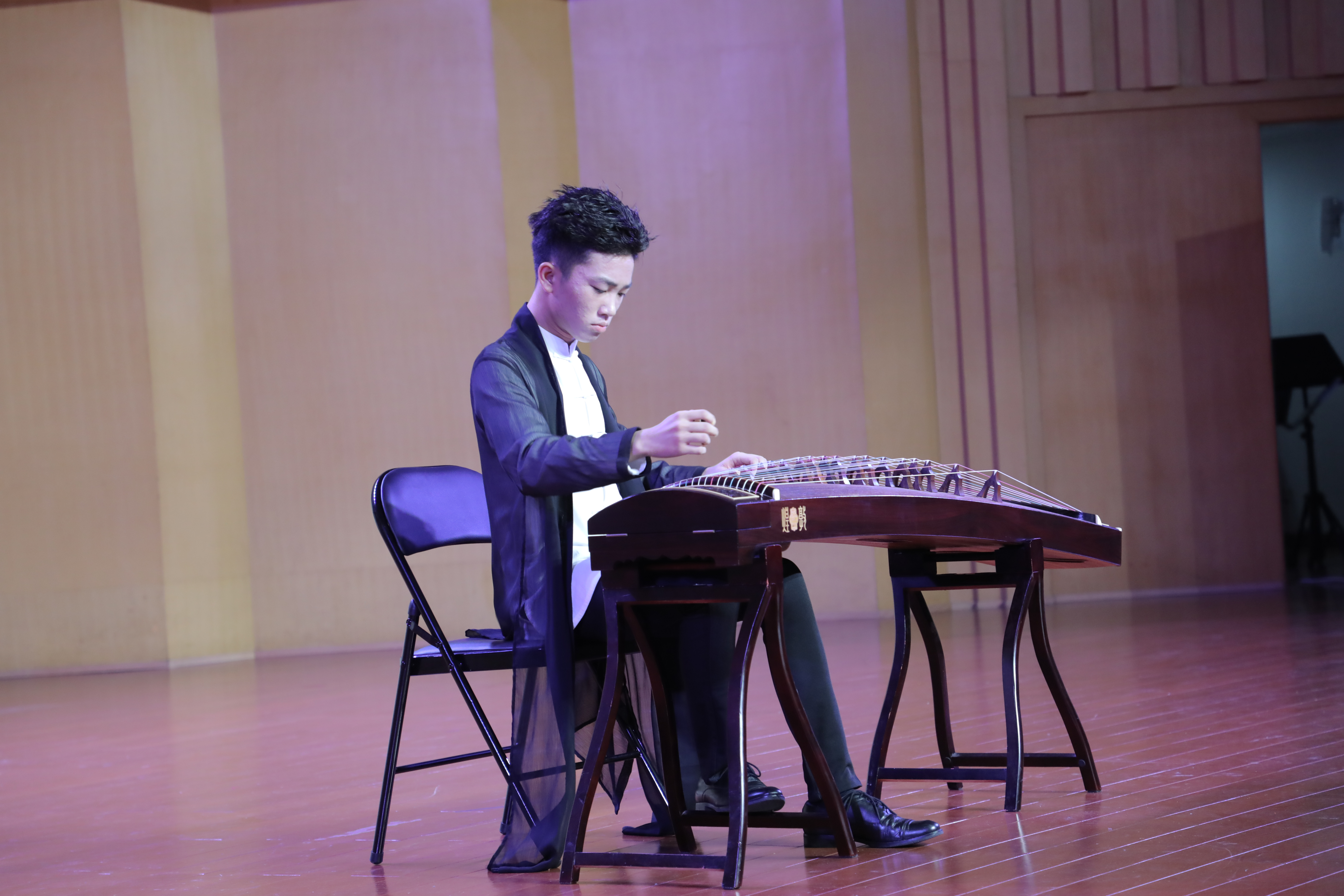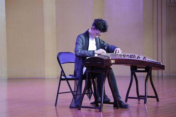 2014级小音乐班余嘉睿古筝独奏《大漠行》,精湛的琴技让新生们惊叹不已。