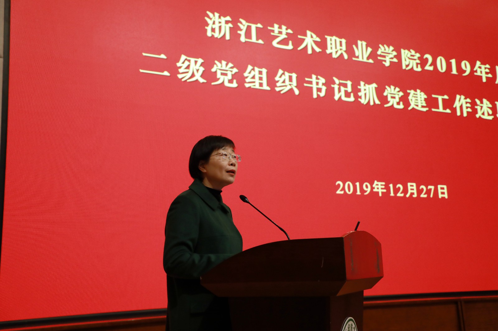 12月27日下午,浙江艺术职业学院2019年度二级党组织书记抓党建工作述职评议会在学校图信报告厅举行。校党委书记朱海闵,院长、党委副书记黄杭娟等在家的党委班子成员出席,相关职能部门和教学单位党政负责人、各基层党支部书记代表和教师代表等70余人参加述职评议会议。全校12个二级党组织书记围绕“履行抓党建工作第一责任人职责情况、开展“不忘初心、牢记使命”主题教育及其他党建工作重点任务完成情况、党建工作基础建设情况、引领推动本单位事业发展情况和对党建工作的分析和思考”等五个方面撰写了书面述职材料。6个教学系党总支主要负责人逐一进行了现场述职,6个二级党组织进行书面述职。与会人员综合平时了解的情况、现场述职情况对各二级党组织书记抓党建工作情况等进行了评议。述职评议由校党委副书记夏开堂主持。党委书记朱海闵对述职进行集中点评并作总结讲话。