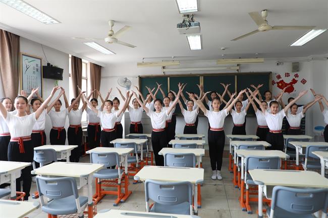同学们现场还表演了疫情主题节目。表演抗击疫情戏曲身段口令操、越剧《致敬白衣天使》、手势舞《听我说谢谢你》,朗诵原创疫情主题诗词……节目形式多样,同学们演绎得惟妙惟肖。