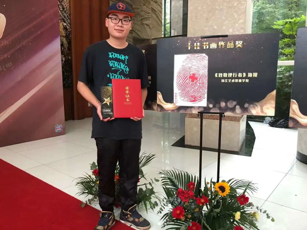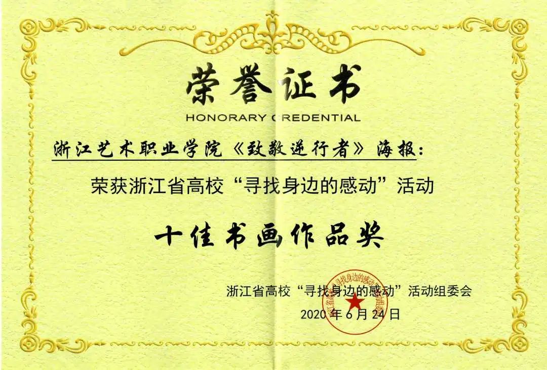 浙艺学子娄力栋海报作品《致敬逆行者》获得浙江省高校“寻找身边的感动”活动十佳书画作品奖。