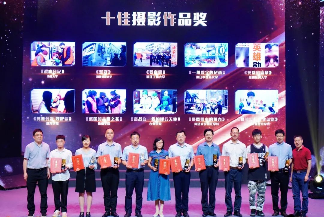 活动现场,对十佳摄影作品奖、十佳书画作品奖、十佳视频作品奖、优秀组织奖进行颁奖。学生志愿者代表李林澎、一线医生代表董蕾、教师代表王超、留学生志愿者代表辛成乐、一线护士代表陈颖分享了自己的抗疫经历和感悟。现场还表演了原创诗朗诵《天使的眼睛》、歌曲《再一次出发》。