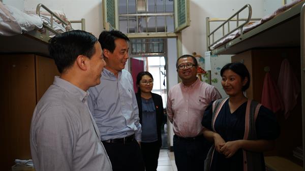 夏开堂走访立志园2号楼,他走进戏剧系、音乐系新生寝室,查看卫生情况,与新生聊天,给予新生生活、学习上的指导。