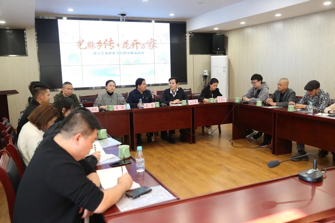 平阳县和龙泉市两地政府及相关文化管理部门领导召集了乡村文化站负责人,和我校就农村文化礼堂工作进行深度探讨。我校教学实践部主任陈芬芳重点介绍了校属企业浙江青年实验艺术团有限公司的概况,以及服务社会和地方文化建设的相关体会。文化站负责人也分享了工作中成功的经验,提出工作中存在的难点问题,与会人员重点就缺乏编创人才、资金不足、人力不足等问题展开深入交流。