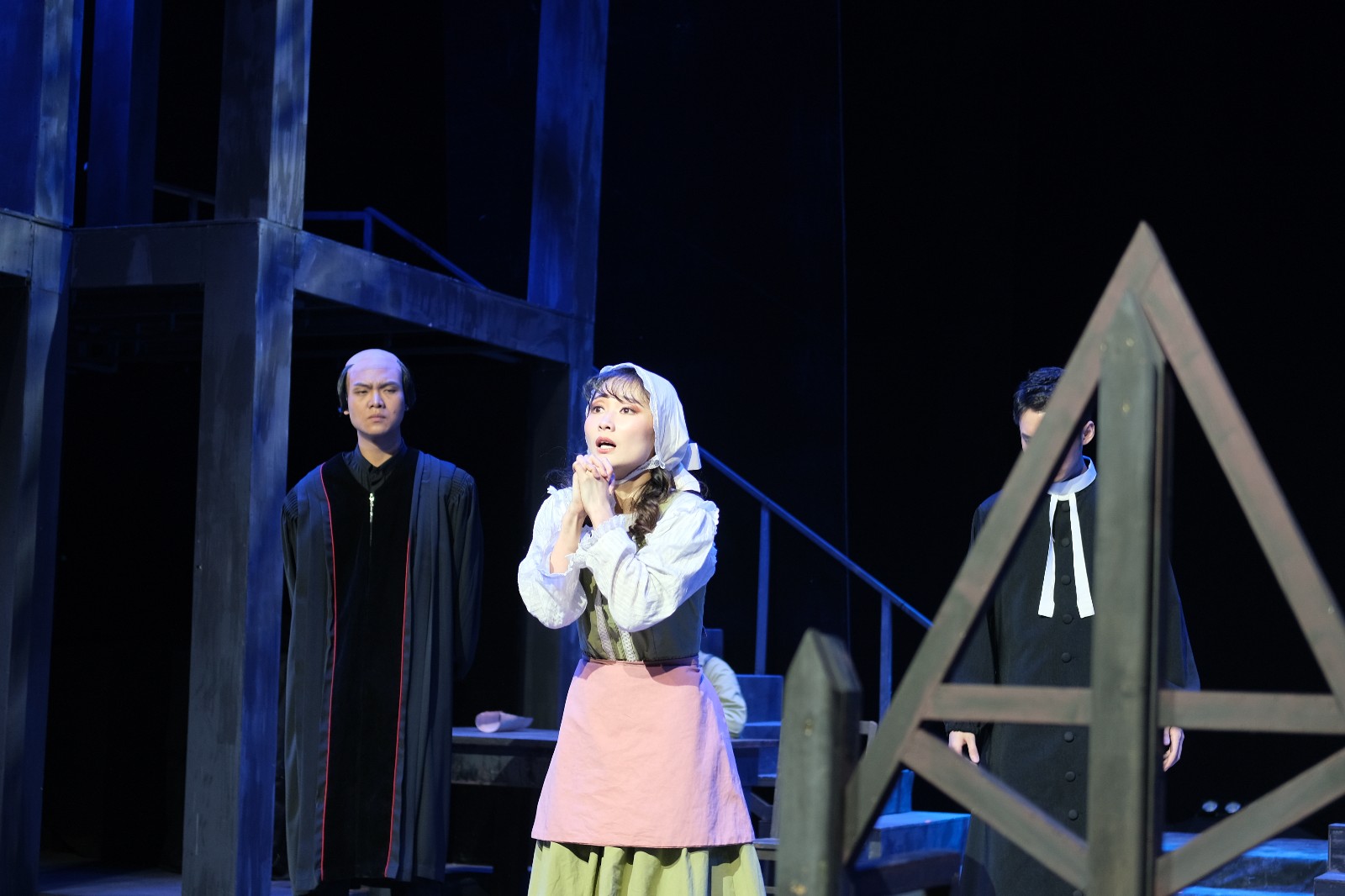 剧情的最后,缓缓出现的审讯台,沉静淡然的殉道者瑞贝卡女士和普罗克托代表高尚的灵魂,他们始终相信真正的正义和诚实。一幕一幕的场景变换以及场上演员的真情演出,带领观众感受着正义和邪恶的冲突,光明与黑暗的较量。就像剧中所说的那样:“我们将永远坚持正义,永远相信未来,就像相信绞刑架下有奋起反抗的伟大灵魂。”