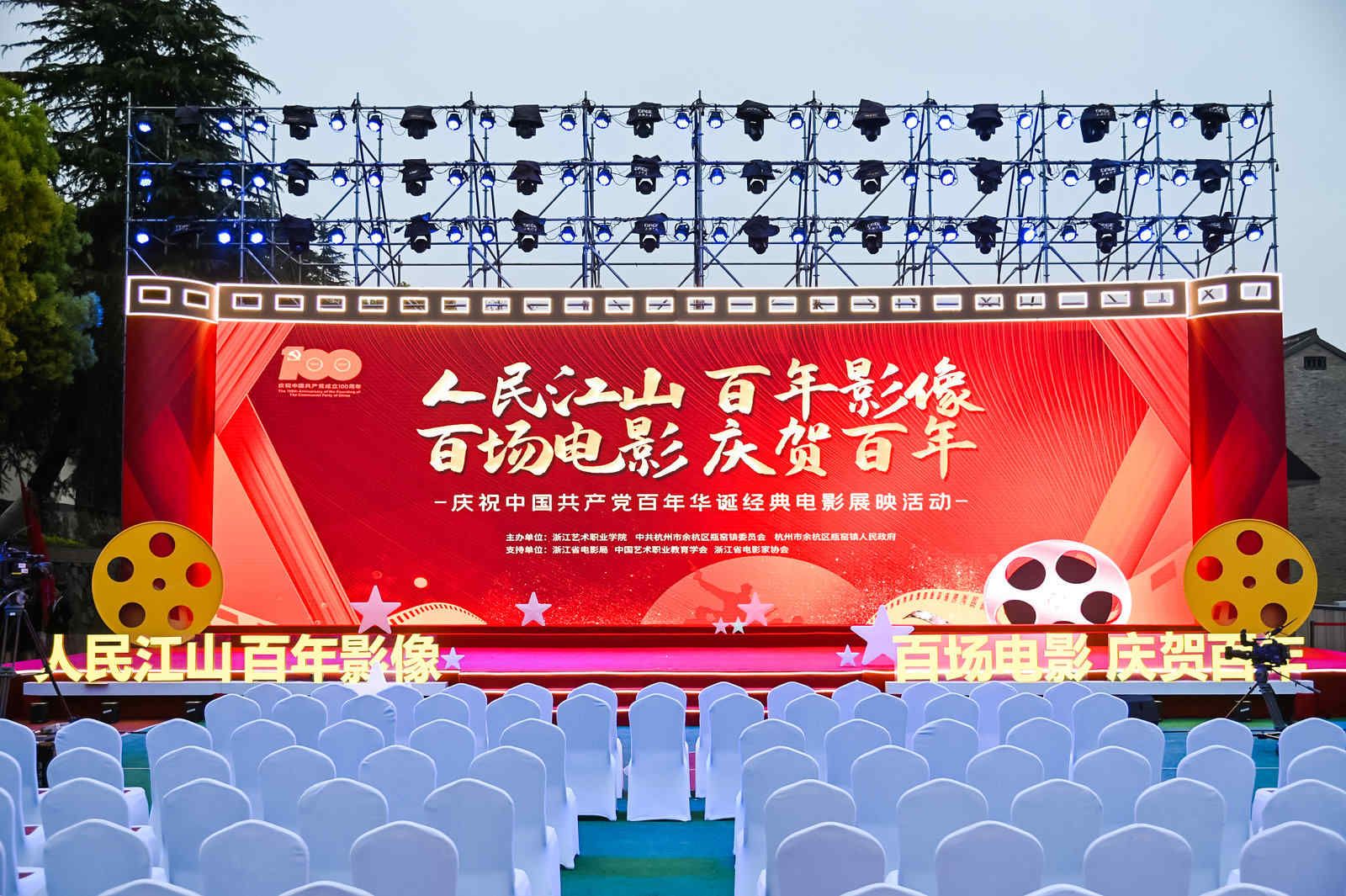 4月2日晚,余杭瓶窑古镇电影院外广场庄严喜庆,早早入座的人们满怀期待。浙江艺术职业学院、余杭区瓶窑镇党委和人民政府共同举办的“人民江山百年影像 百场电影庆贺百年”——庆祝中国共产党百年华诞经典电影展映正式启动。浙艺师生、瓶窑古镇居民、游客等共同参加了启动活动。本次校地合作,地方搭平台,高校引项目,围绕庆祝建党百年主题,依照时间脉络为居民、游客和师生播放百场电影,回望烽火岁月、奋斗历程,大力弘扬“人民就是江山,江山就是人民”时代主旋律。