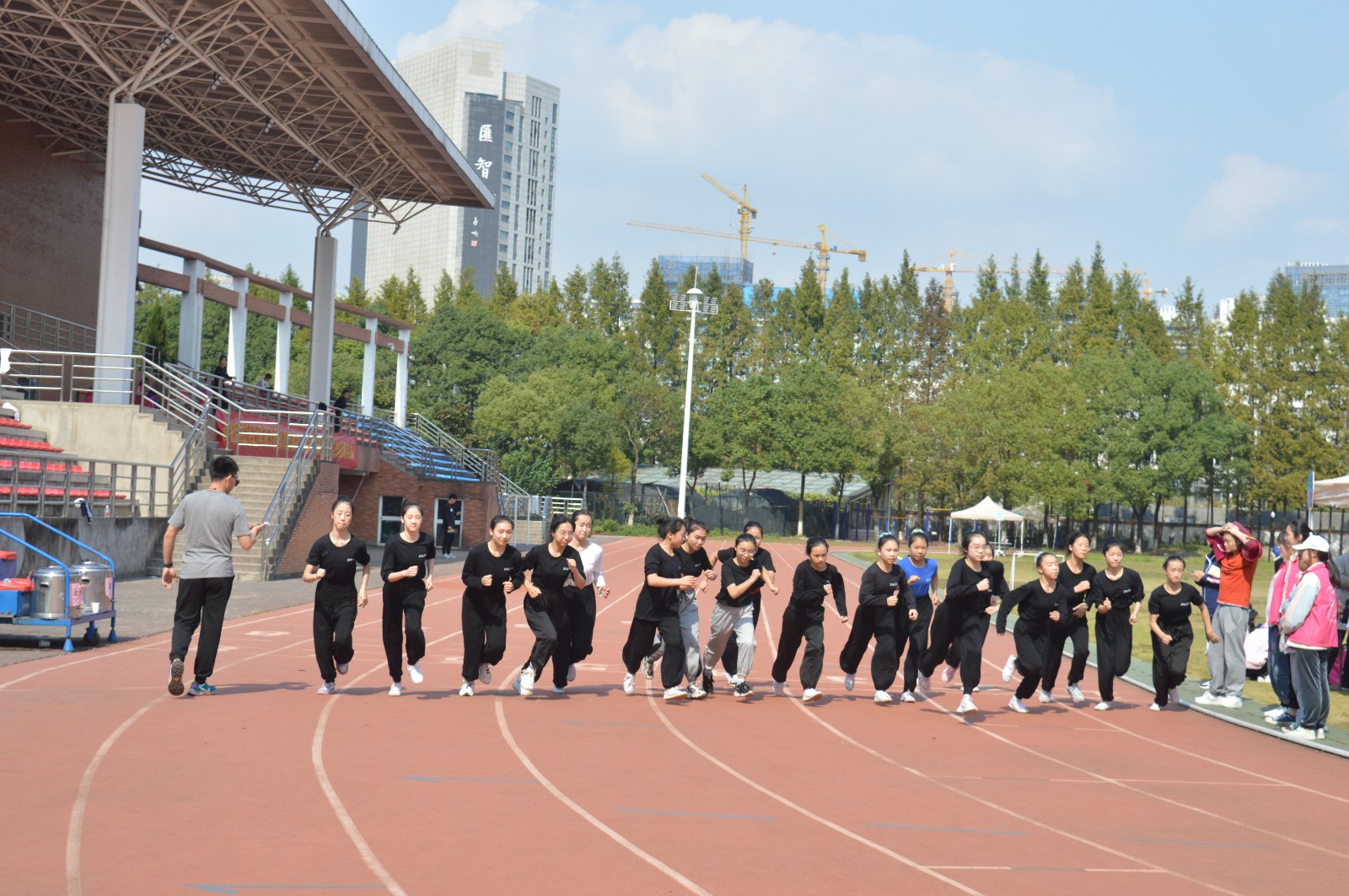 艺往无前,浙艺有我。我校于10月28-30日举办校第十八届达标运动会。此次运动会在体质健康测试与运动会相结合、运动会达标赛成绩与学年体测成绩相结合的基础上,对全校学生进行分批PK。比赛项目分别为身高体重、肺活量、坐位体前屈、立定跳远、仰卧起坐(女)/引体向上(男)、50米跑、800米跑(女)/1000米跑(男)。