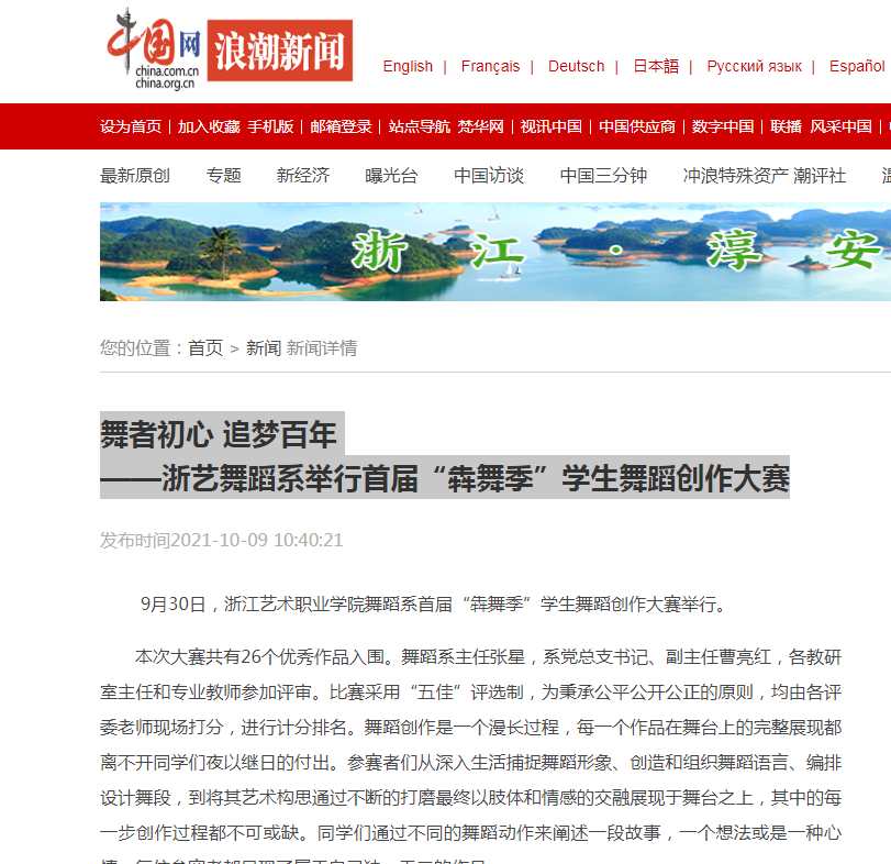 9月30日,浙江艺术职业学院舞蹈系首届“犇舞季”学生舞蹈创作大赛举行。