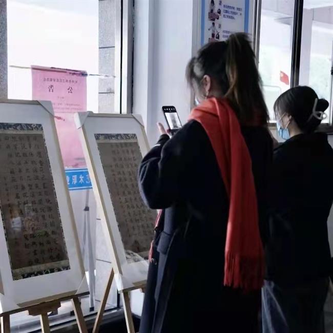 而在书法模块中,除了作品《风住尘香》以宋朝著名女词人李清照的《武陵春·春晚》为临摹范本,其余27幅作品内容均以南宋时期诗人词人们所作的诗词为范本临摹而成。同学们经过反复的练习,选择自己最擅长的字体,自成格调,将最完美的作品呈现给参观者。