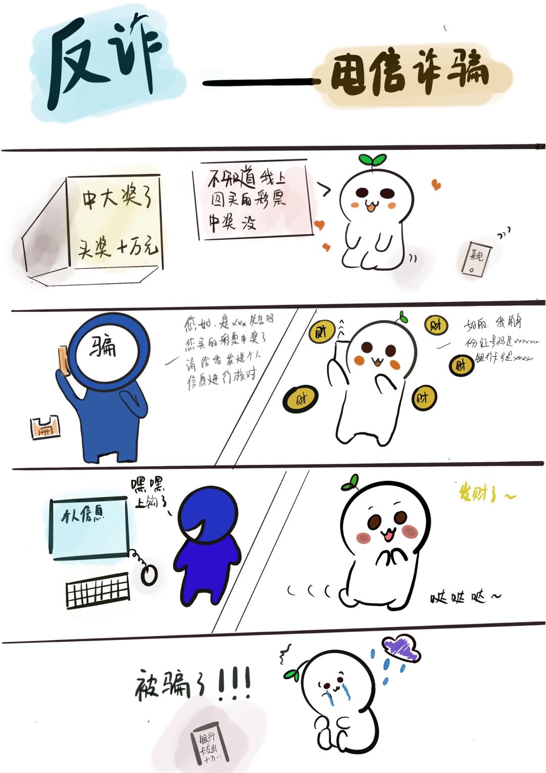 美术系学生发挥专业优势,以通俗易懂、幽默诙谐的漫画艺术形式对当前普遍出现的电信网络诈骗手段、作案方式及识别技巧等进行了解读和宣传,是一场生动的校园安全宣传教育。