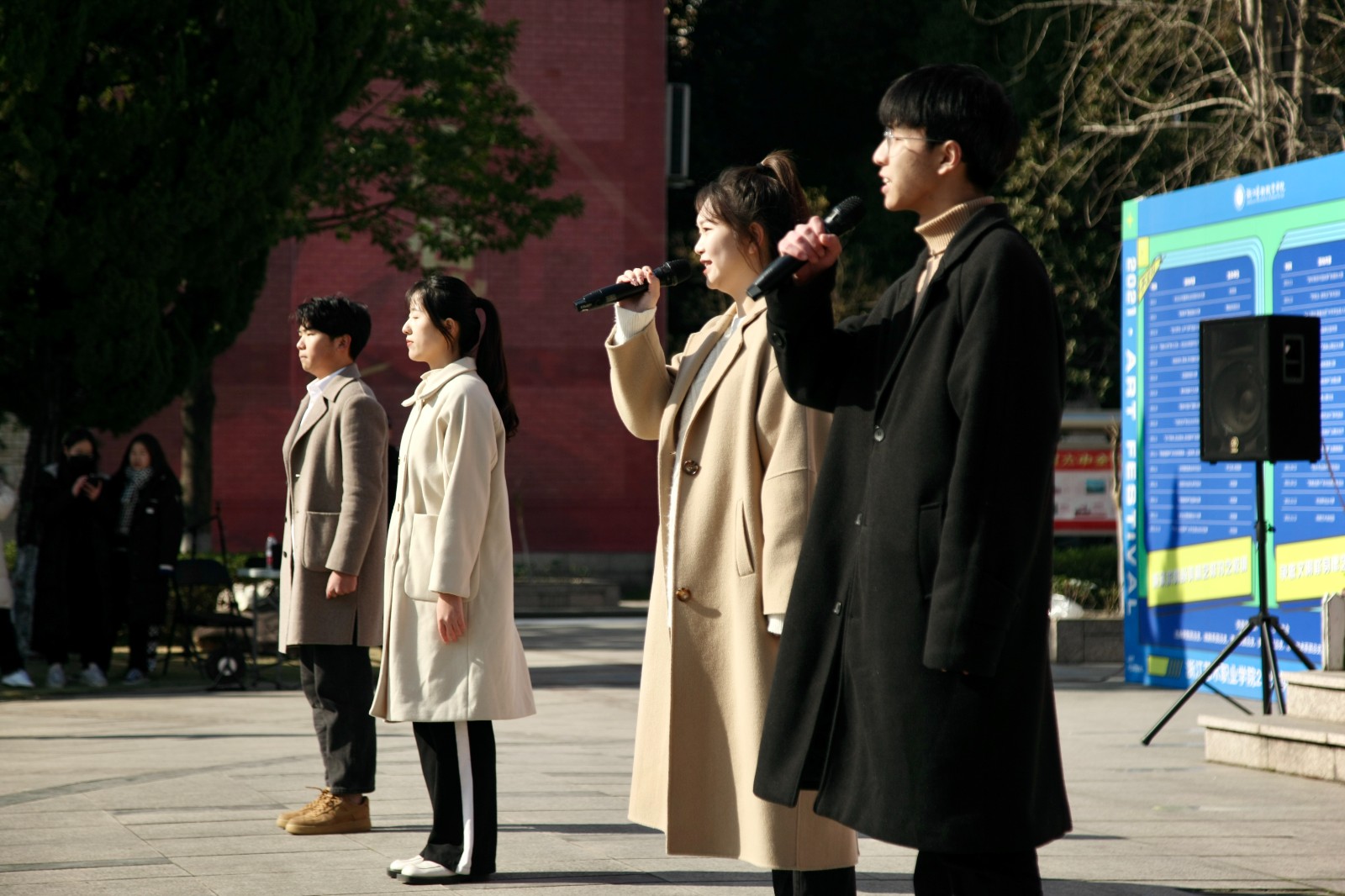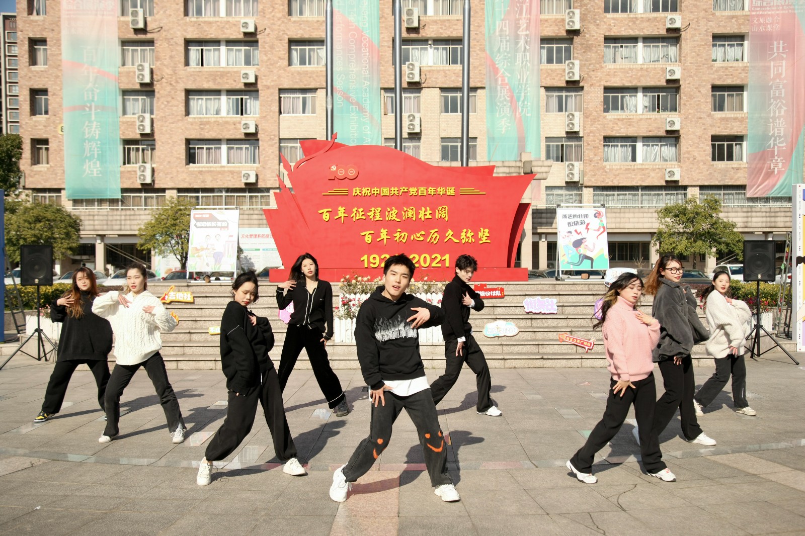 12月27日,在冬日灿烂阳光下,以“浙艺的社团很精彩”为主题的2021年书记校长有约第六期在校中心广场举行,我校18个学生社团纷纷亮相进行风采展示。校党委书记薛亮,院长黄杭娟,党委副书记夏开堂,党委委员、宣传部(统战部)部长马向东参加活动并与各社团成员进行交流。