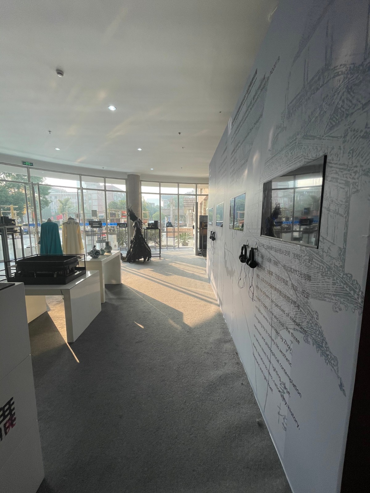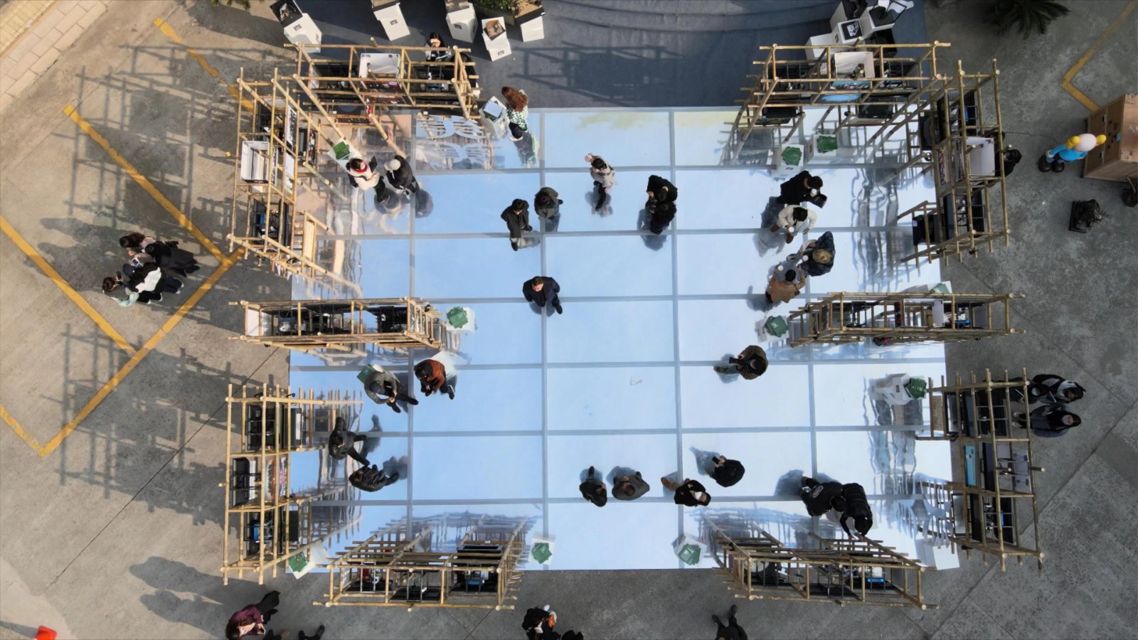 展览以“绿水青山”为主题,用长在浙江安吉的原生态竹子为材,以“镜面”为倒影,作为“水”来呈现山、水、竹一体的画面,参展作品被安置在十个可以移动的三米多高的“竹山”上,以浙江舞美学会的徽标为基础,延伸设计搭建出了“舞美”二字的形状,每个竹架都可单独作为一道风景在展馆内移动,合则一片生机,离也一枝独秀,并赋予了每座“竹山”不同的使命和功能,体现了浙江舞美人希望走出去与外界互动的意愿和姿态,同时也体现了浙江一贯倡导的“窗口”意识,透过文化看世界。