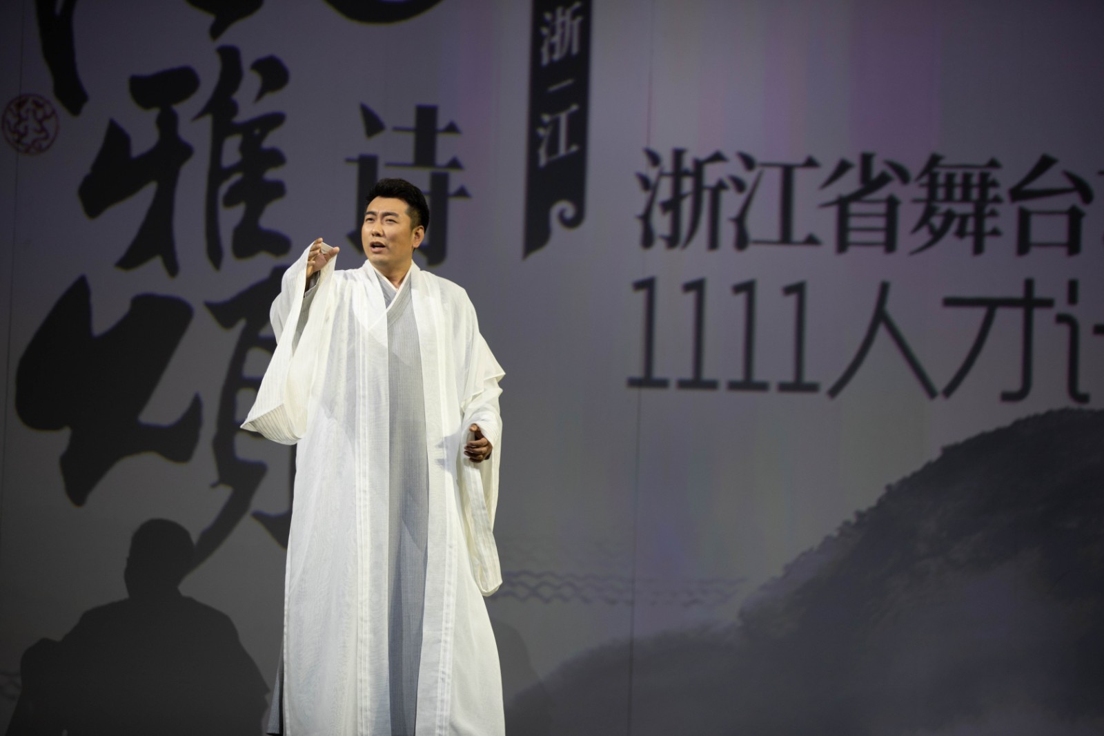 一期三年的培养,今年正是结业之年。“1111”人才计划已推出多场培养成果展示,引发业内外热议和好评。这是最新一场重量级展示,表演、编创、导演和舞台技术四个培养类别的培养对象都参与其中,携手共同打造。除了婺剧片段《白蛇传·断桥》,楼胜带来全新创排节目《满江红》,融京歌、鼓韵和戏曲武打技巧,“希望带给观众更多新意”。鲍陈热、鲍晨、蔡浙飞、傅玉、高伟伟、刘乐、宋广顺、薛雷、张琳、章益清、郑培钦等也都带来拿手好戏,包括越剧片段《陆游与唐琬·题诗壁》、台州乱弹《活捉三郎》等,更跨界演绎吟唱《水调歌头》、《声声慢》、《密州出猎》等。刘坤饰演“诗魂”,他对这次演出很满意,“即兴起舞,很兴奋、很过瘾”。包峥剡、黄亦川、蒋新光、那刚等组成导演组,包峥剡分享,“每个中国人心里都有一首诗,呈现这种感受和情感,既是共享更是回报”。邬娜担任作曲,董燕、李昌国、裘冰、祝世明等负责舞美设计,其中负责舞台设计的裘冰用8个字总结,“尊重规律,打破规则”。(以上均按姓氏字母排序)