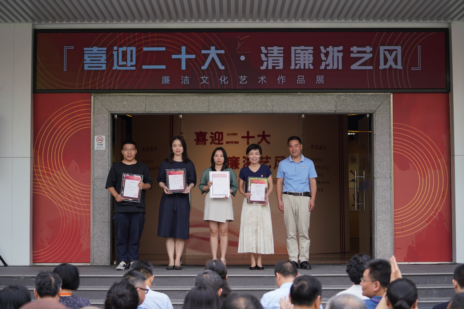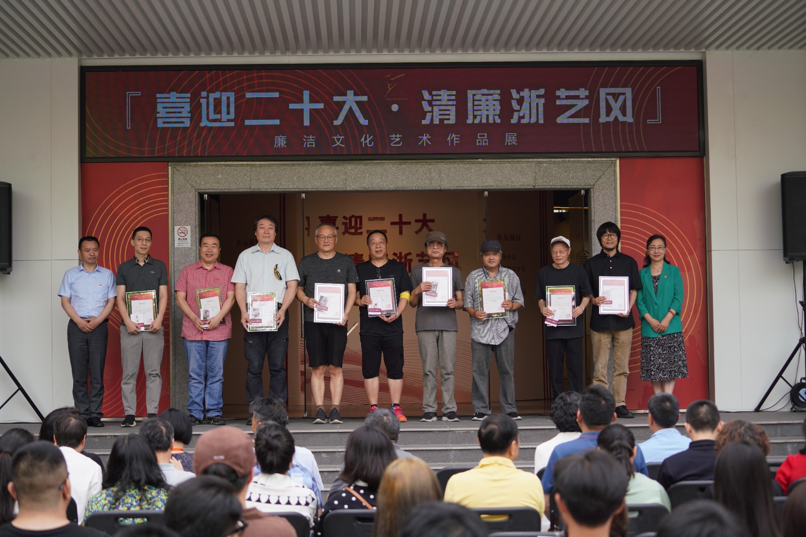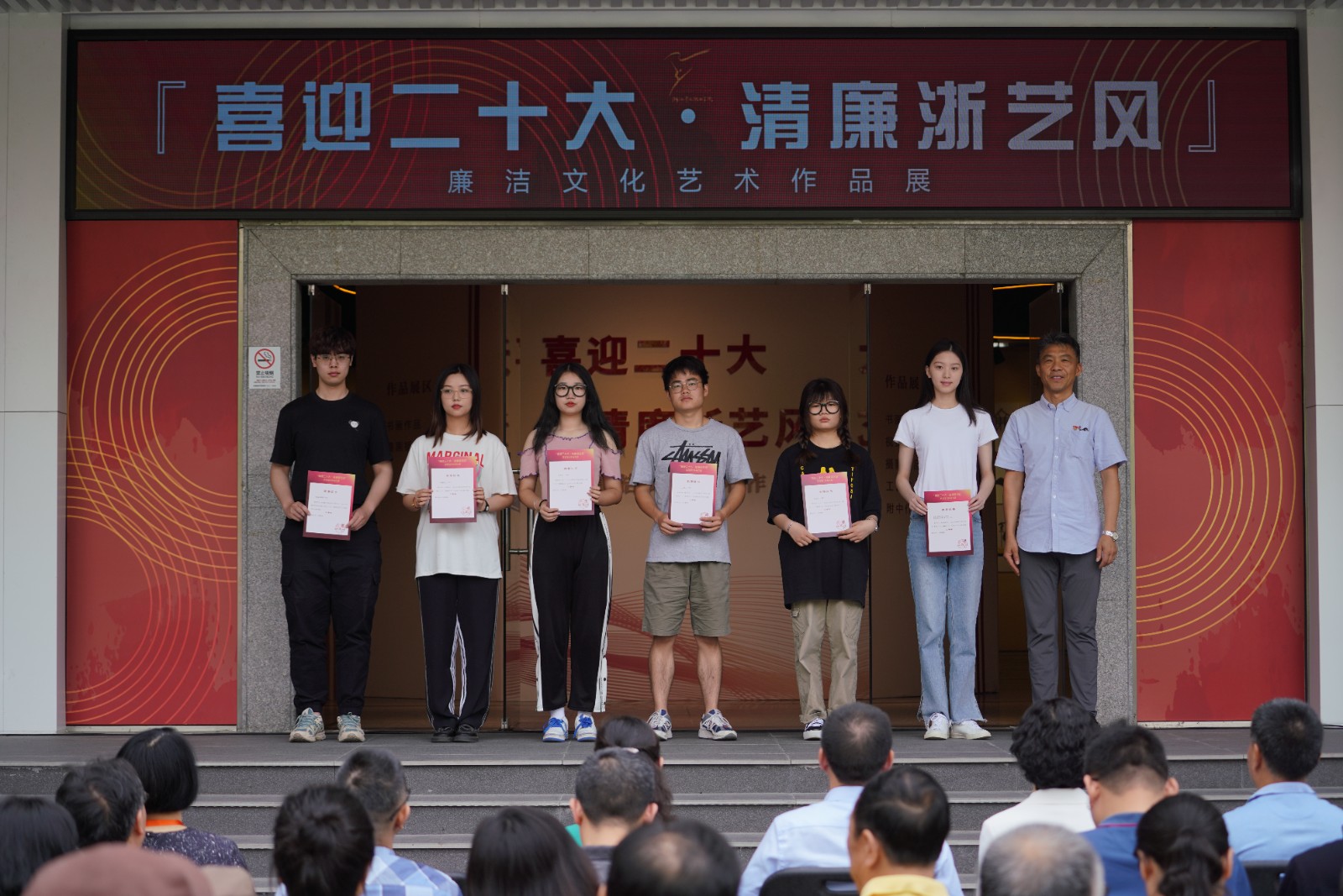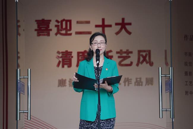 6月8日上午,浙江艺术职业学院“喜迎二十大·清廉浙艺风”廉洁文化艺术展在学校四号楼1楼展厅开幕。驻省委宣传部纪检监察组副组长叶向阳,省文化和旅游厅直属机关纪委书记许林军,省文化和旅游厅宣传工作领导小组副组长、一级调研员杜毓英,浙江艺术职业学院院长黄杭娟,副院长沈军甫、支涛,校党委委员、组织部部长刘杨,各二级部门负责人和师生代表参加。开幕式由校党委委员、纪委书记徐芳主持。